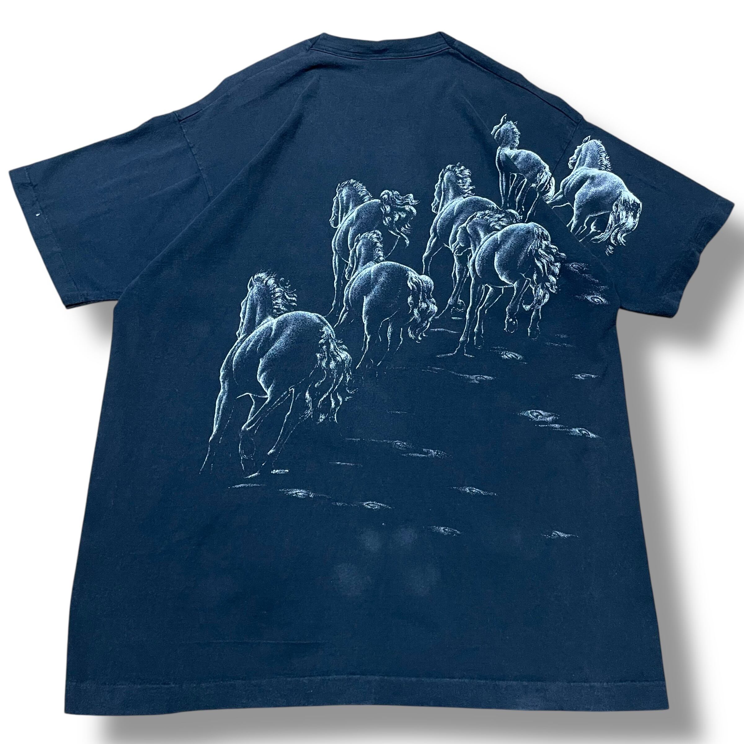 【XL】【90年代】【USA製】アニマルプリント 馬 ホース アニマルプリントTシャツ 半袖Tシャツ 黒T