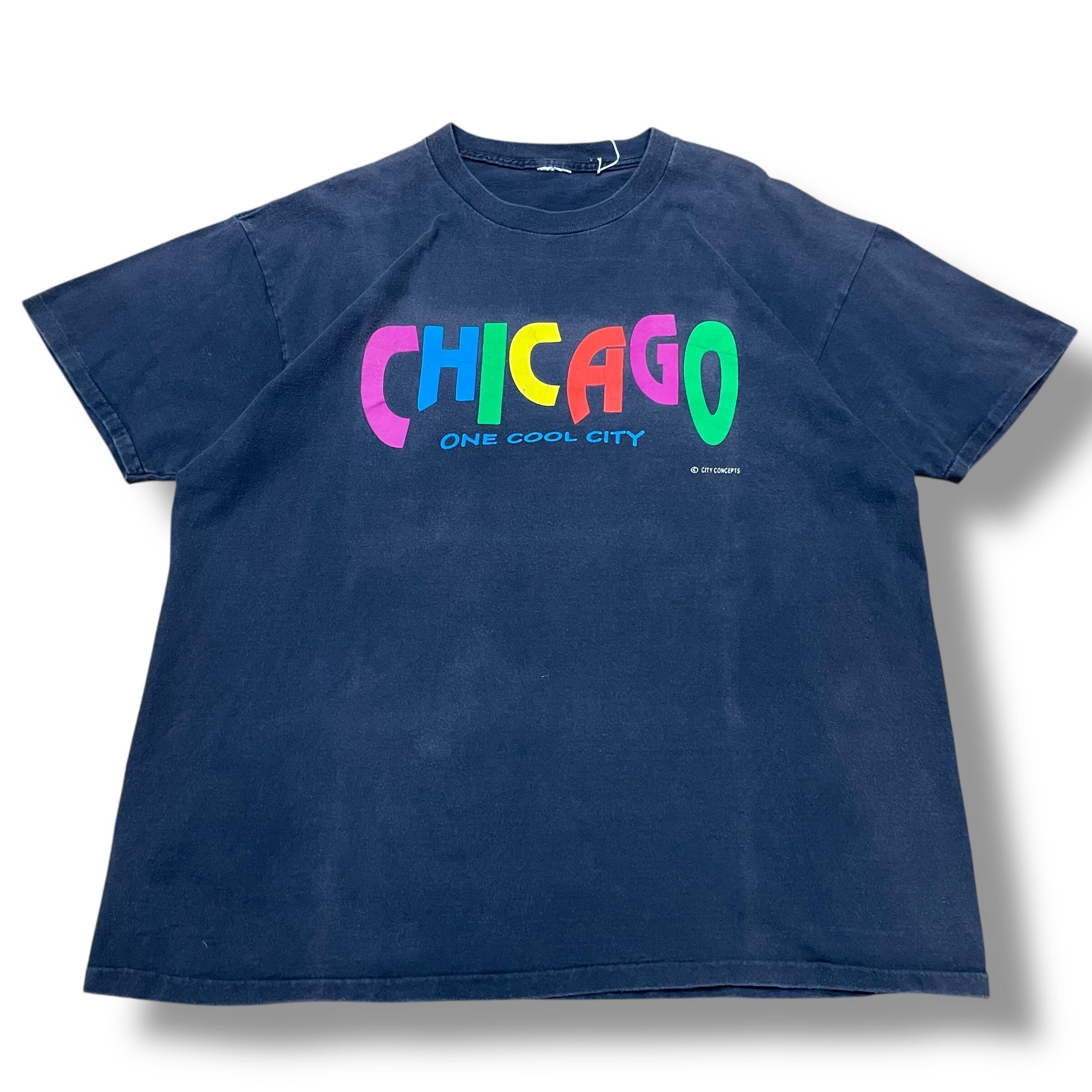 【XL】【90年代】CHICAGO Appleサンプリング 企業ロゴ プリントTシャツ 半袖Tシャツ 黒T フェード
