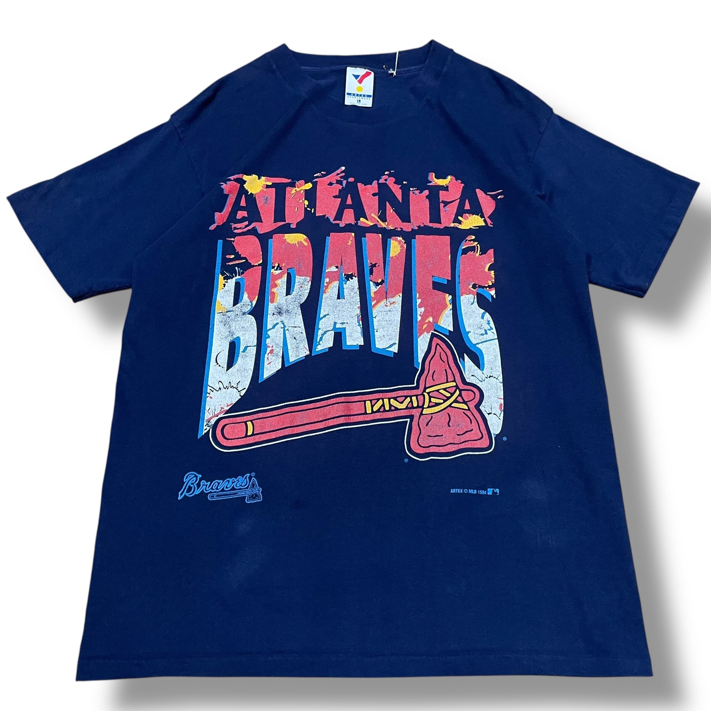 【L】【90年代】【USA製】 ATLANTA BRAVES MLBチーム カレッジロゴ プリントTシャツ 半袖Tシャツ ネイビー 紺