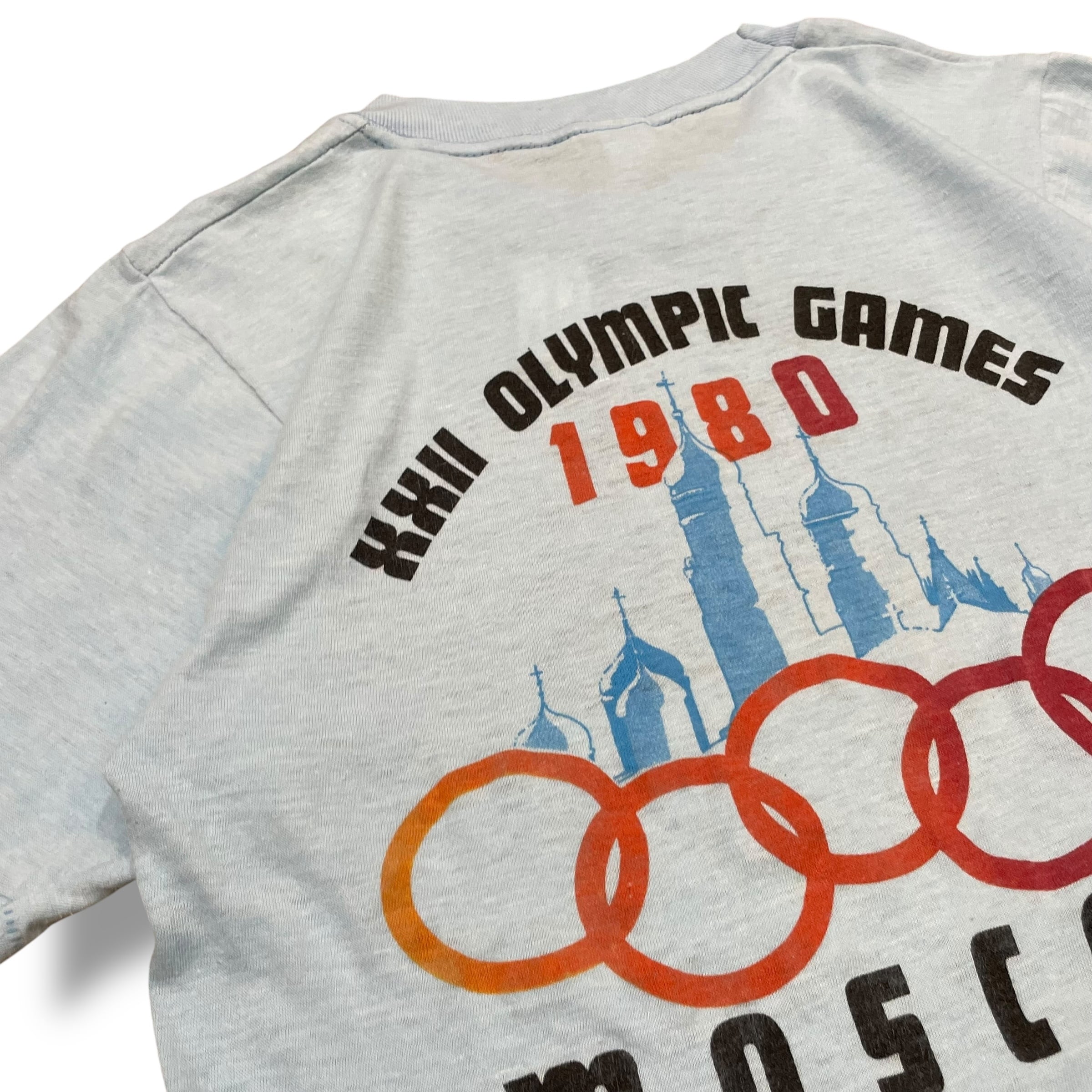 モスクワオリンピック プリントTシャツ 半袖Tシャツ アイスブルー 水色