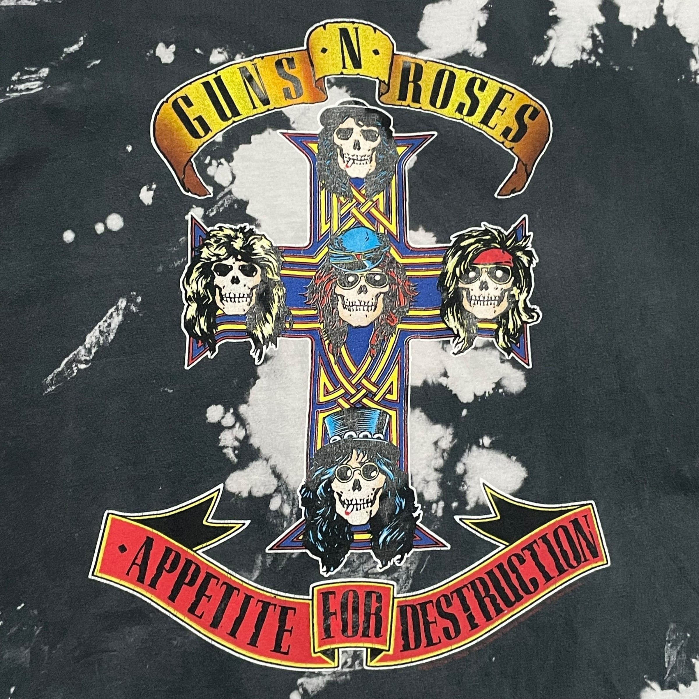 【L】Guns N' Roses ガンズ・アンド・ローゼズ ブリーチ タイダイ染め バンドTシャツ プリントTシャツ 半袖Tシャツ