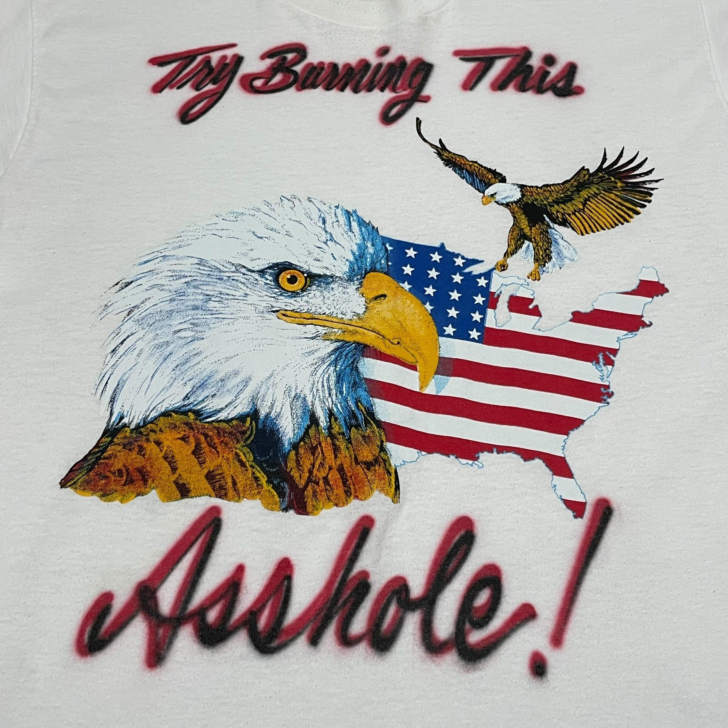 【XL】【90年代】【USA製】アニマルプリントTシャツ 鷹 イーグル ハンドペイント 半袖Tシャツ 白Tシャツ