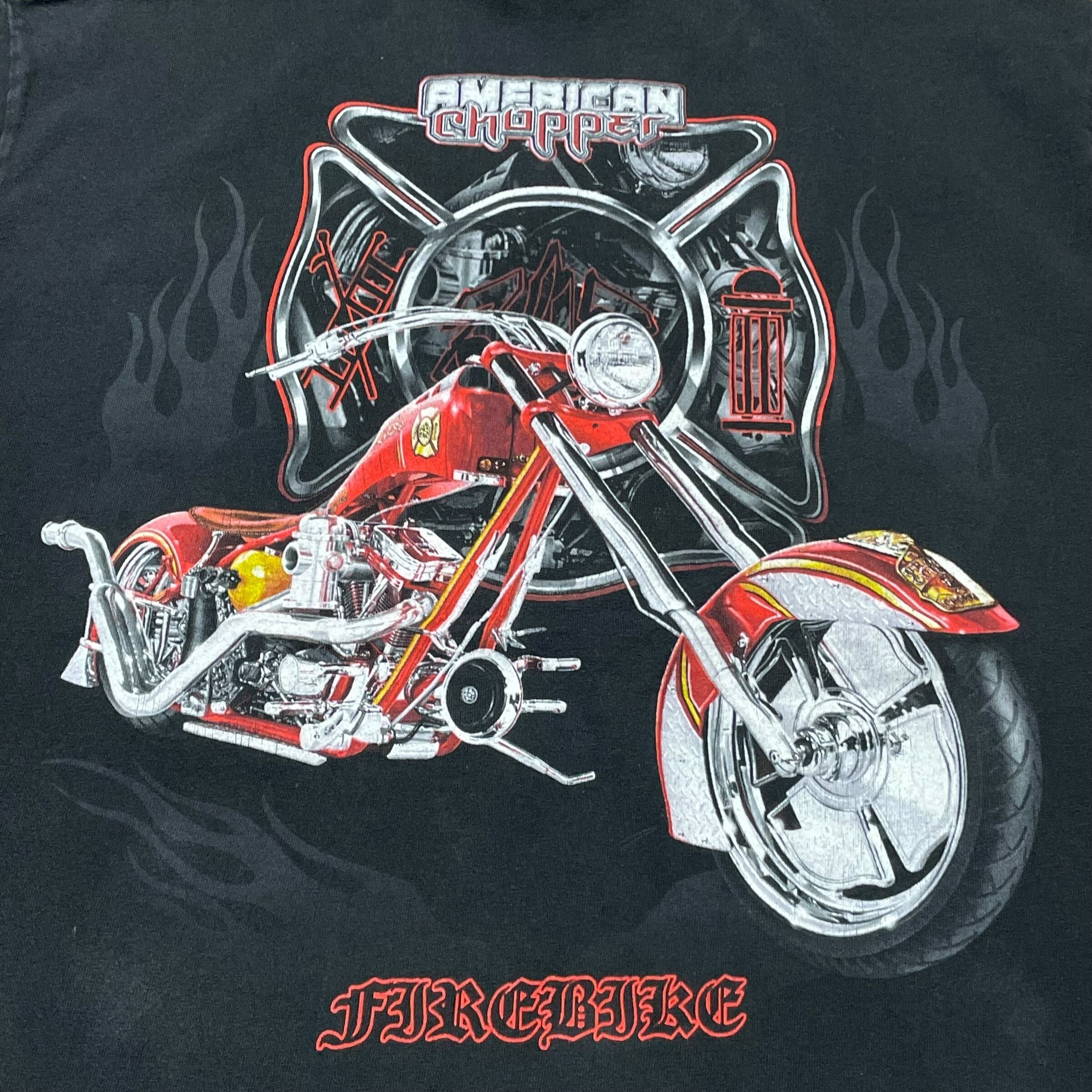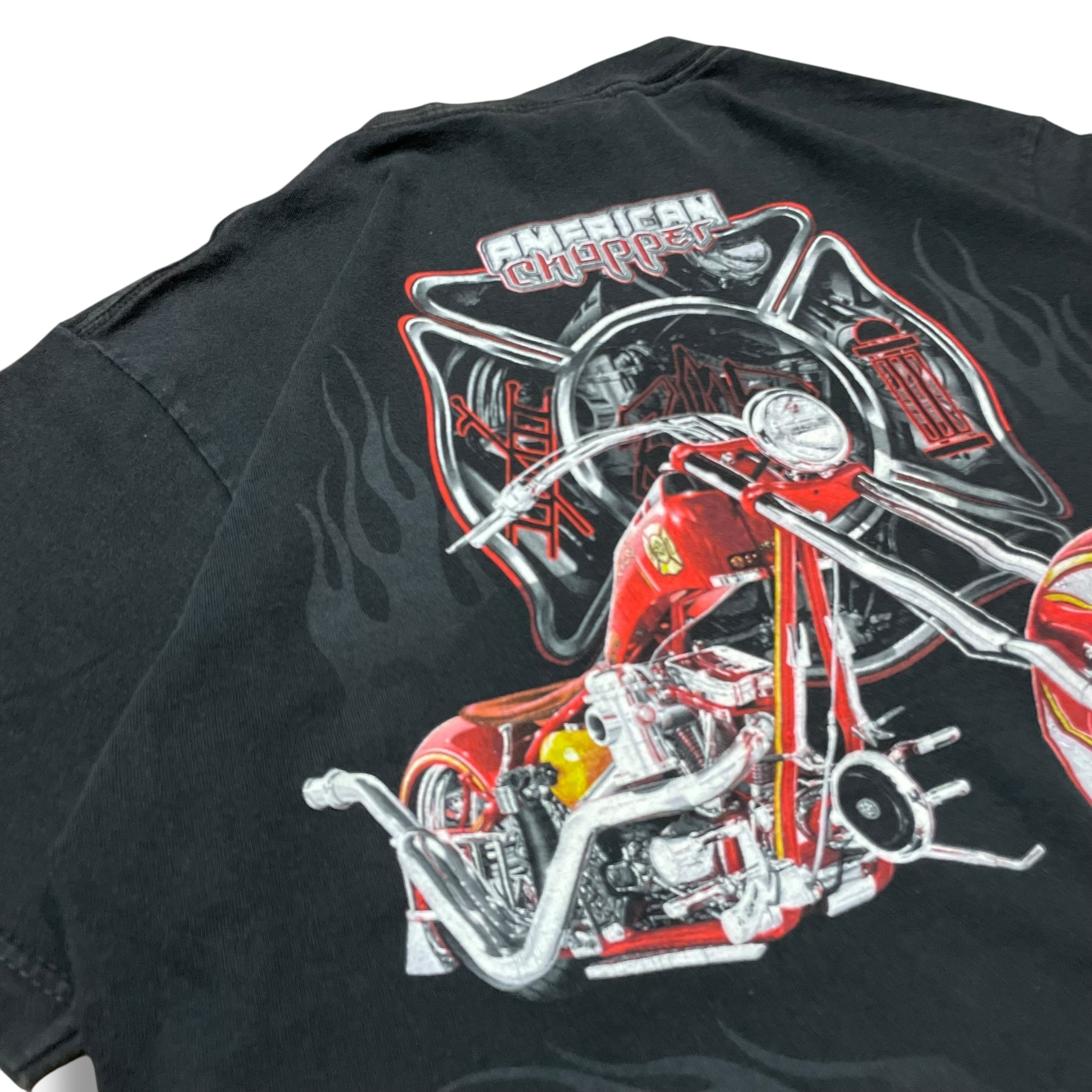 【L】【00年代】AMERICAN CHOPPER アメリカンチョッパー モーターサイクルTシャツ プリントTシャツ 半袖Tシャツ 黒T