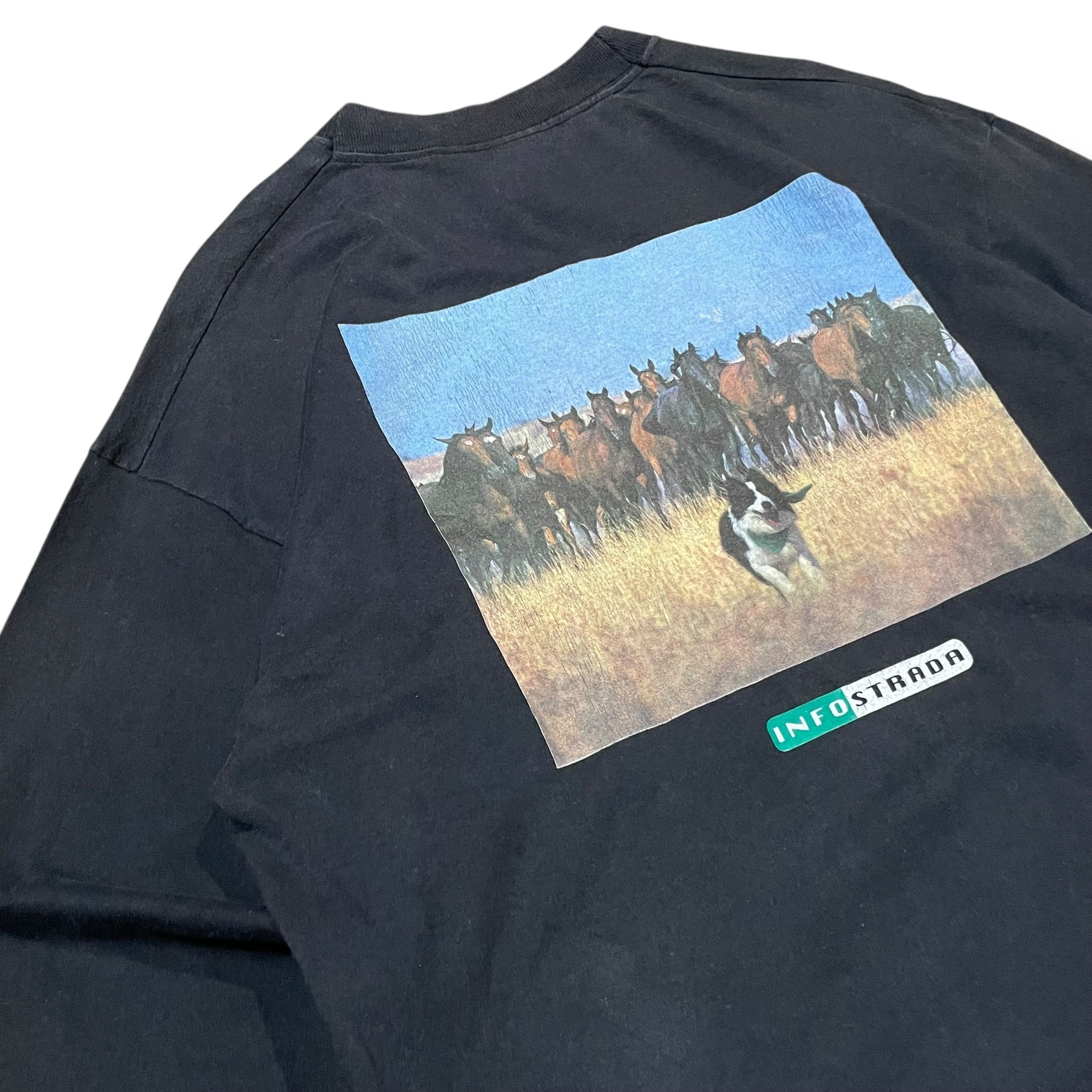 90~00年代 INFO STRADA 企業ロゴ 長袖Tシャツ ロンT