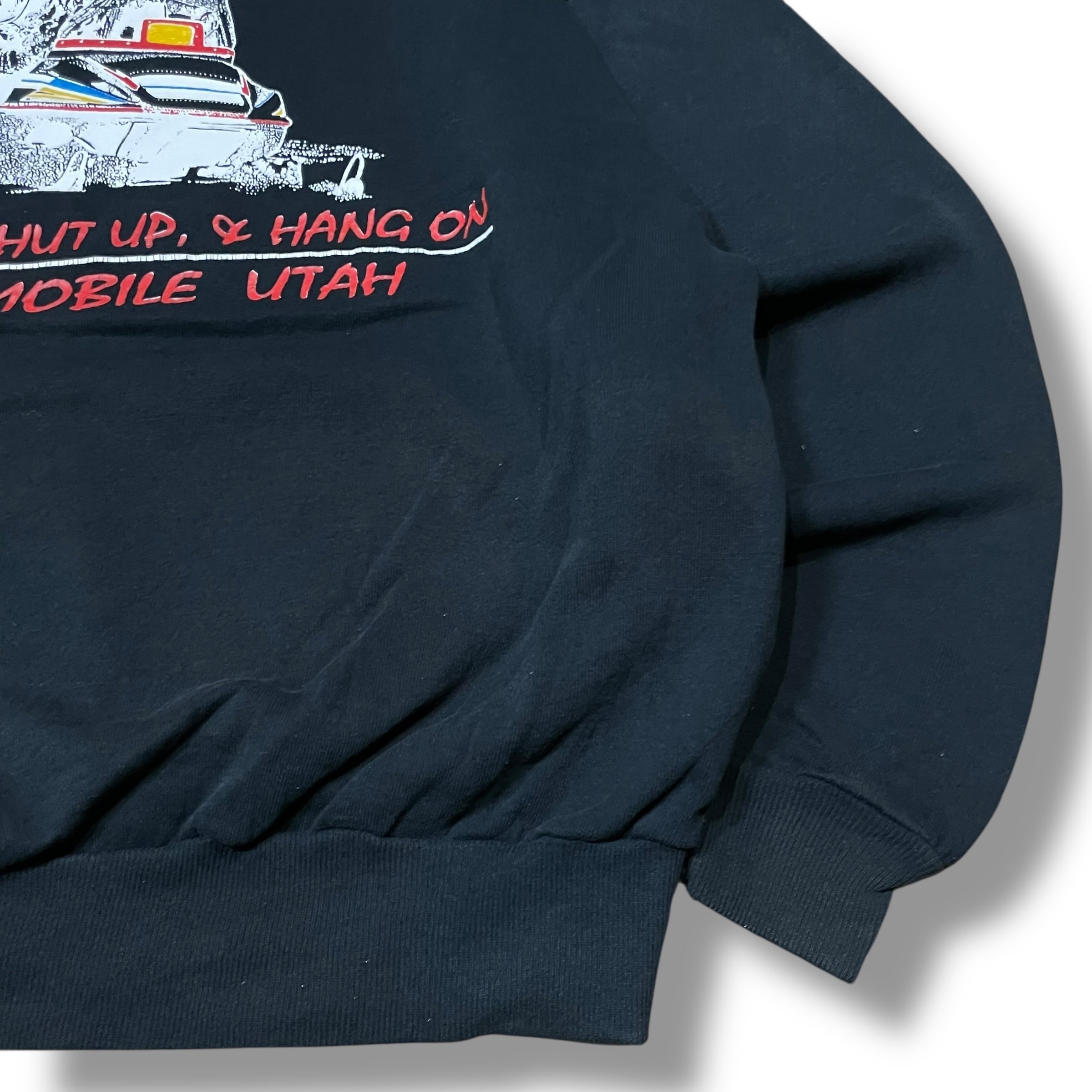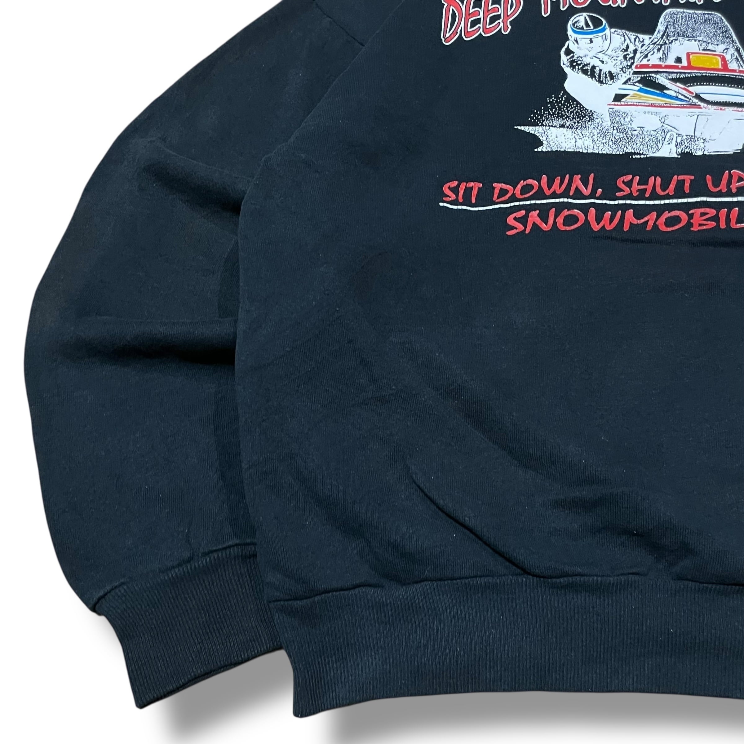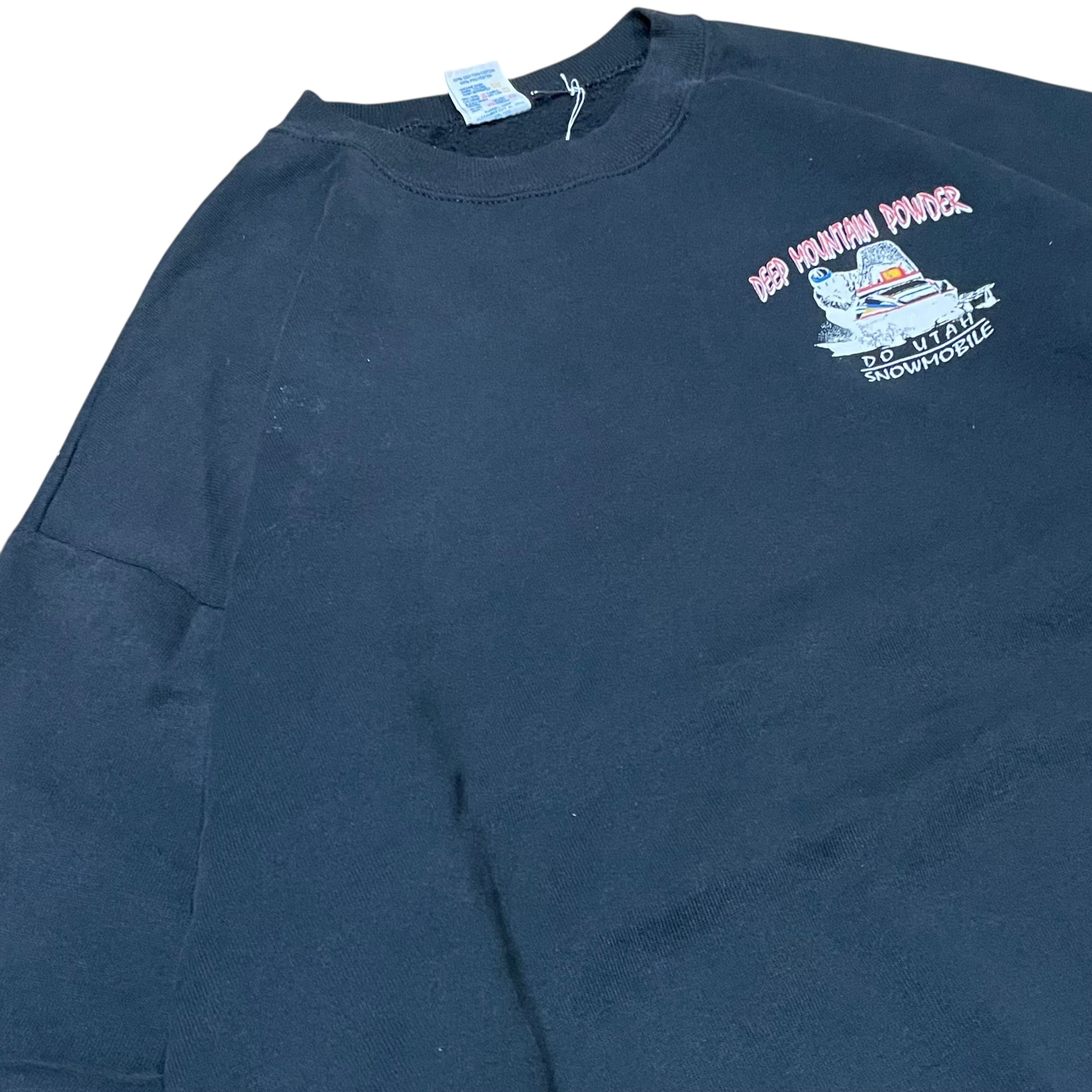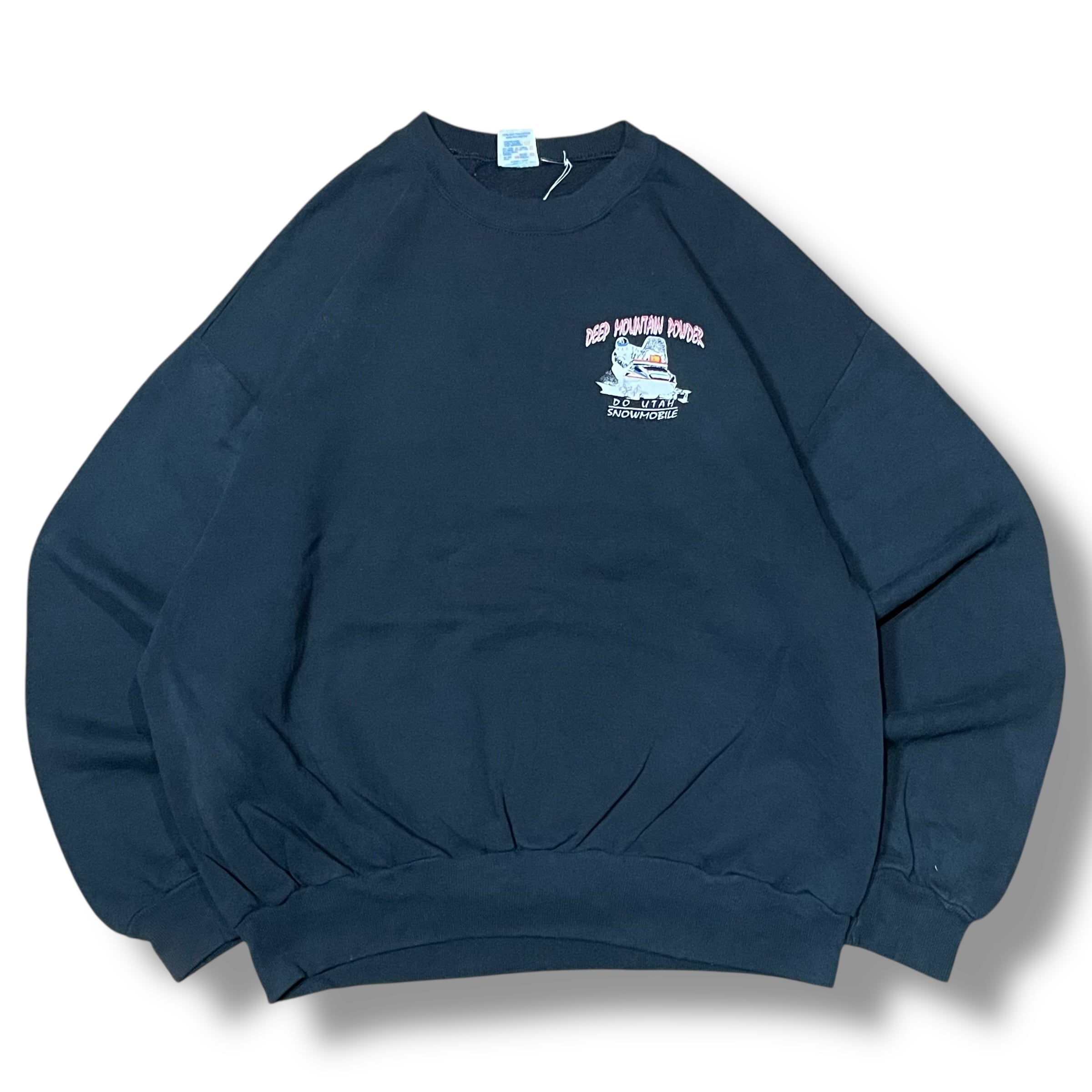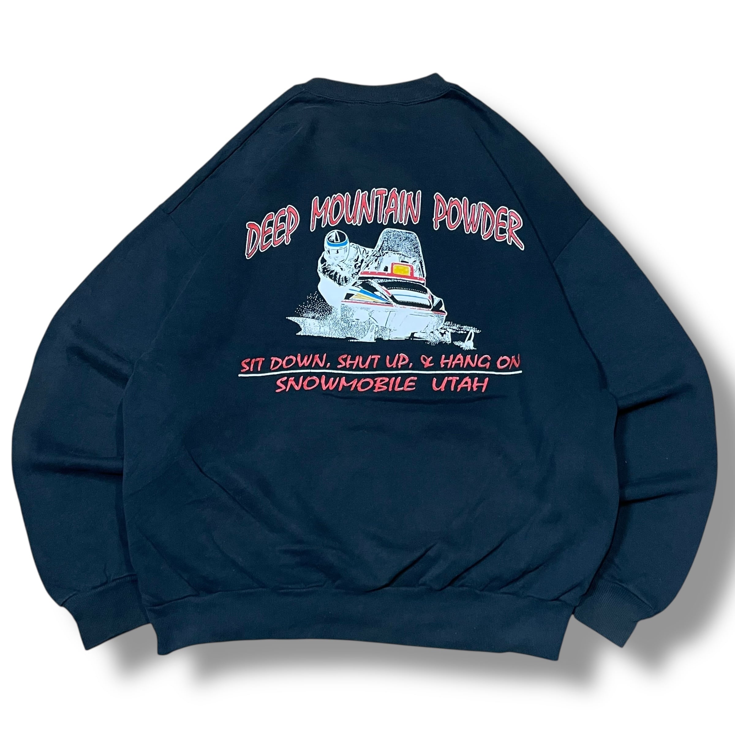 【XL】【90年代】【USA製】 DEEP MOUNTAIN POWDER プリントスウェット ブラック