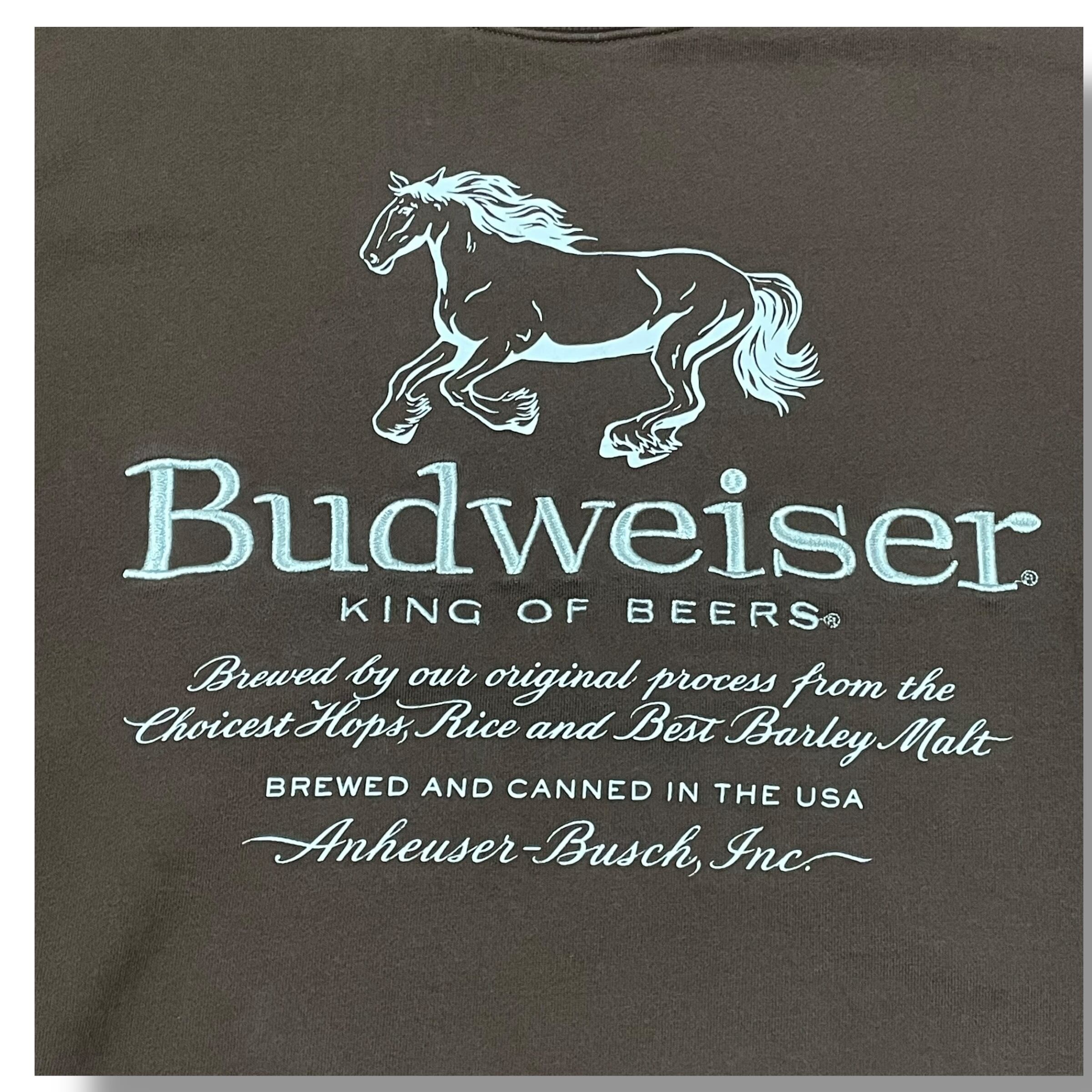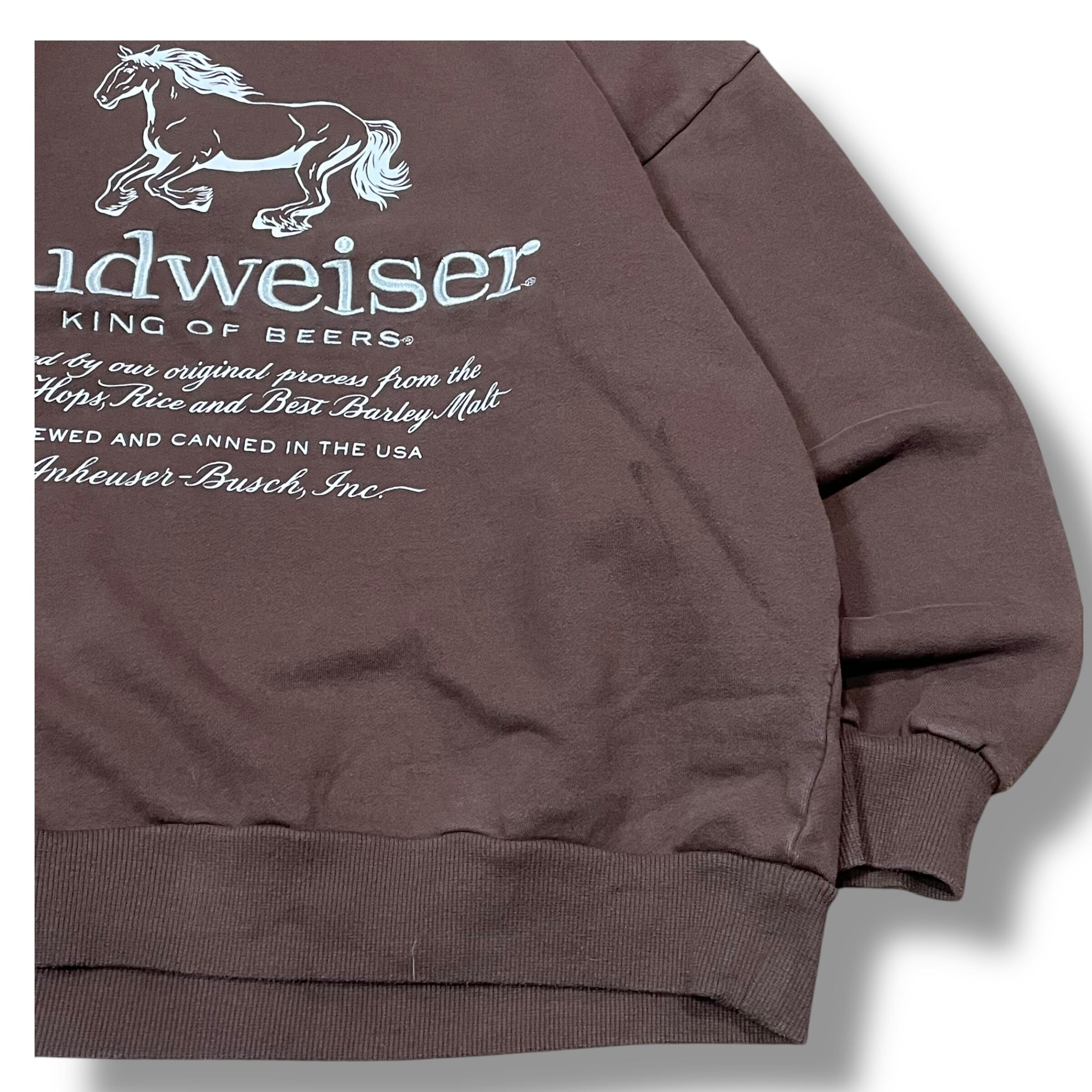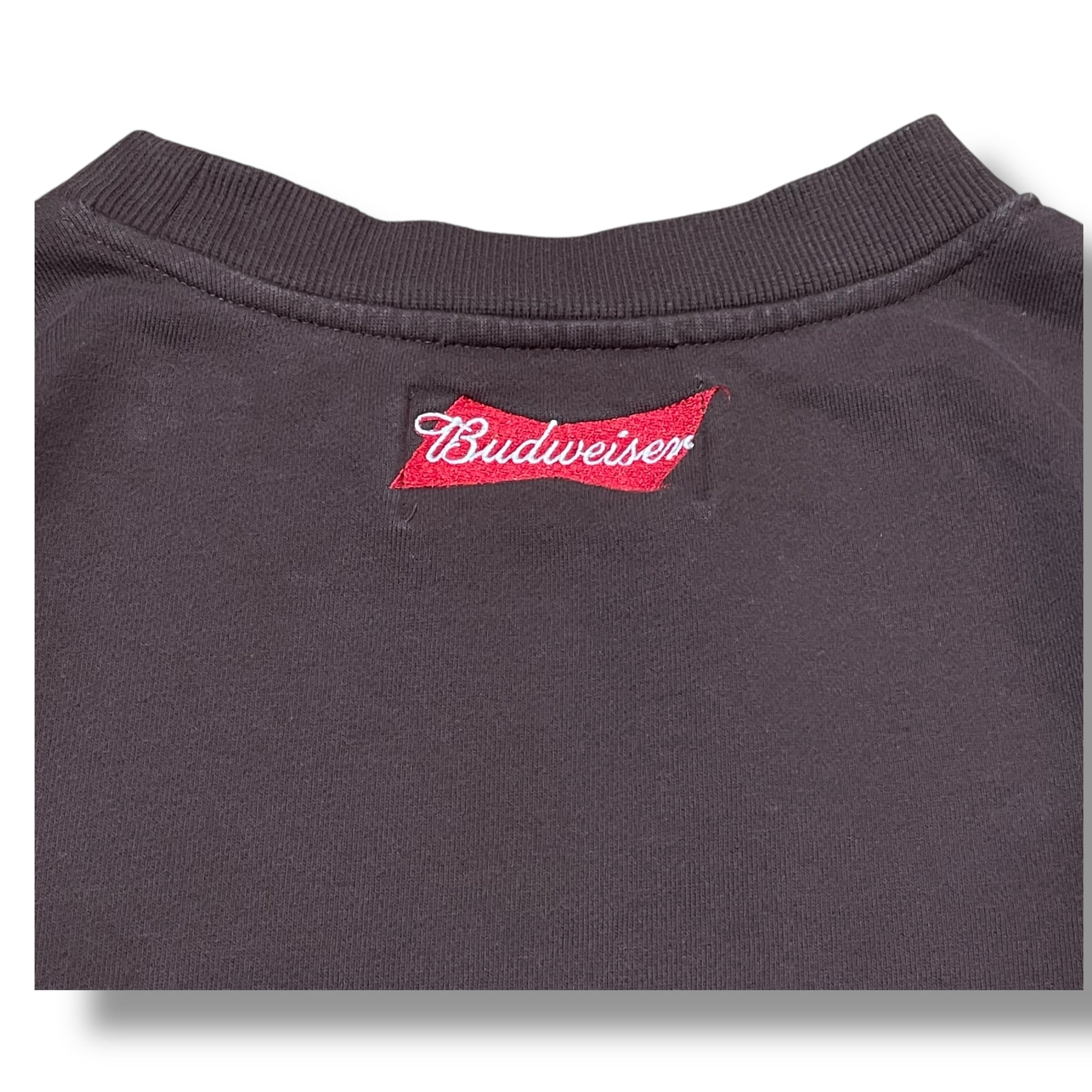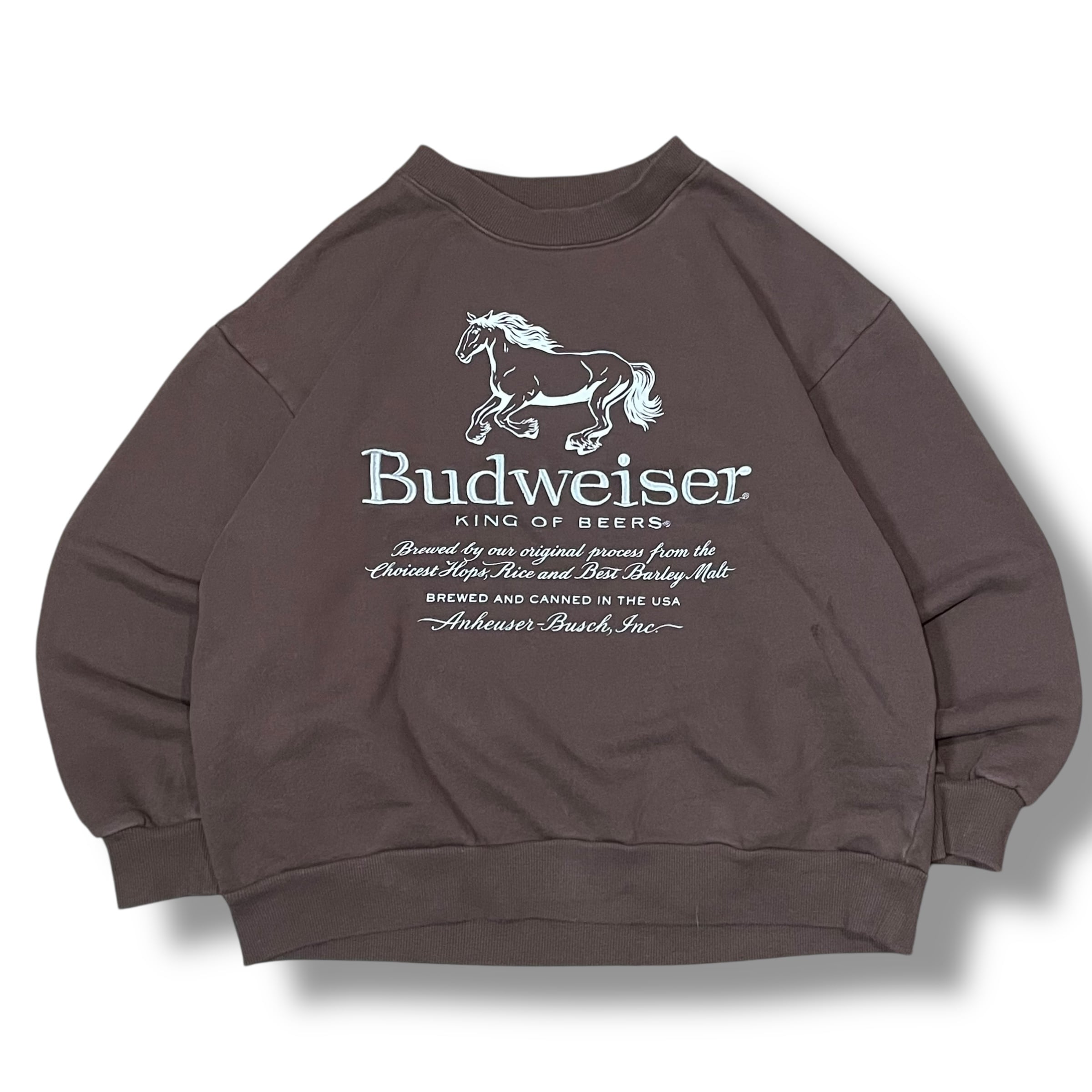 【XL】Budweiser バドワイザー プリントスウェット バンドスウェット スウェット 企業ロゴ 茶色 ブラウン