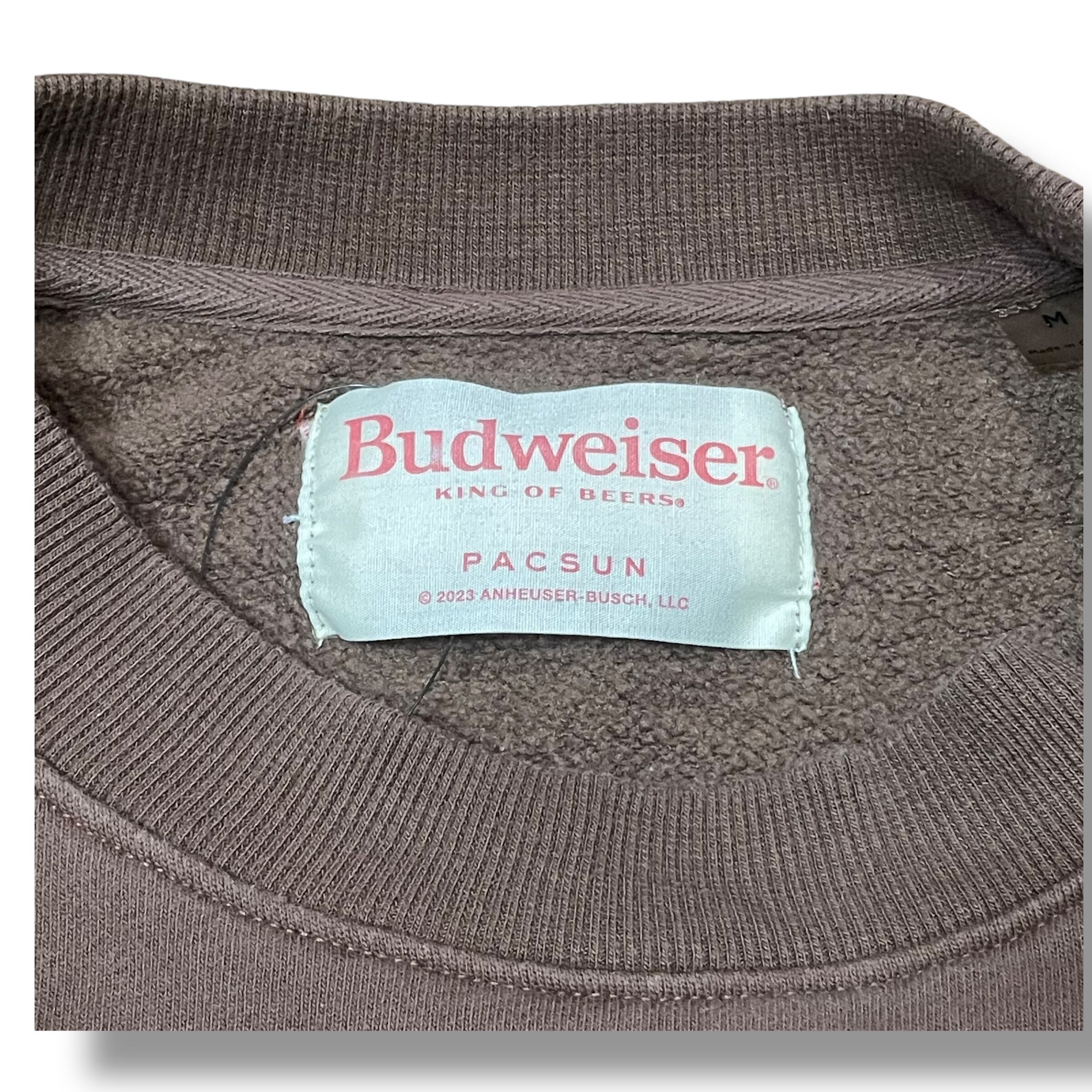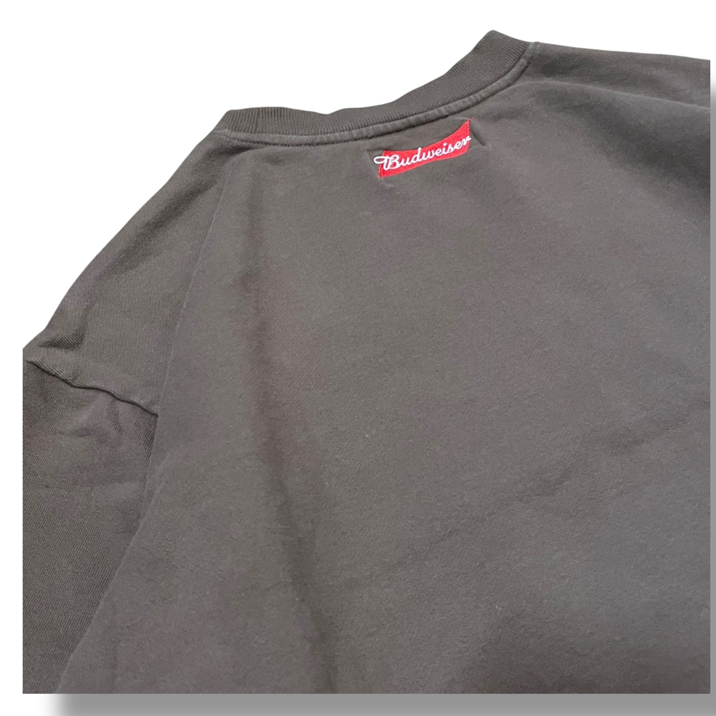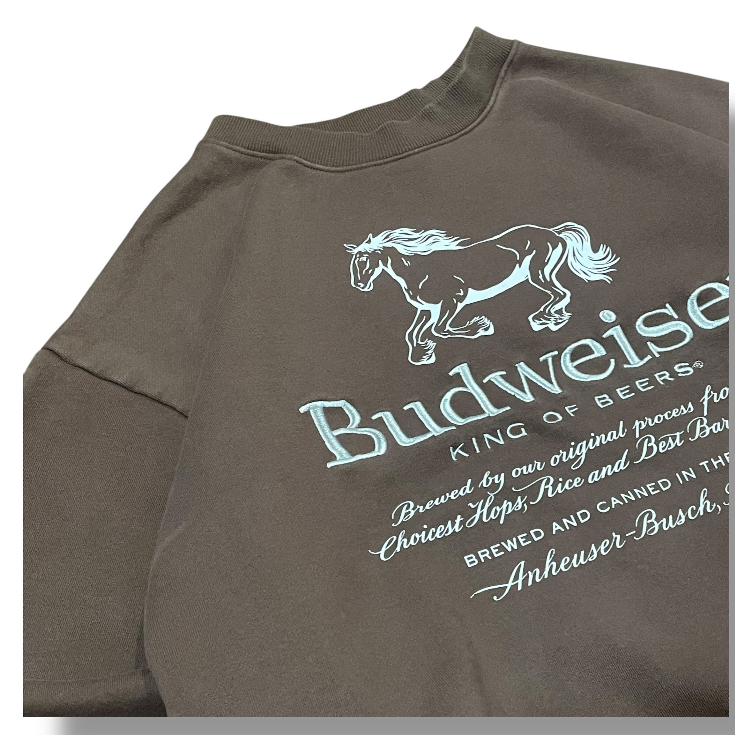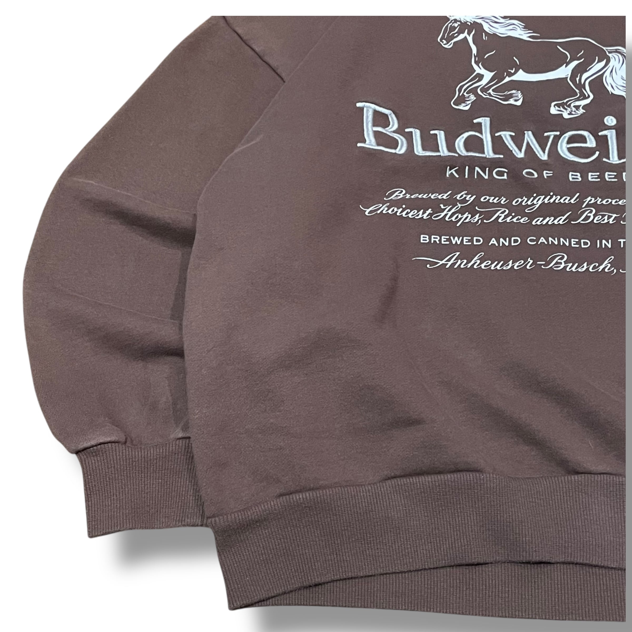 【XL】Budweiser バドワイザー プリントスウェット バンドスウェット スウェット 企業ロゴ 茶色 ブラウン