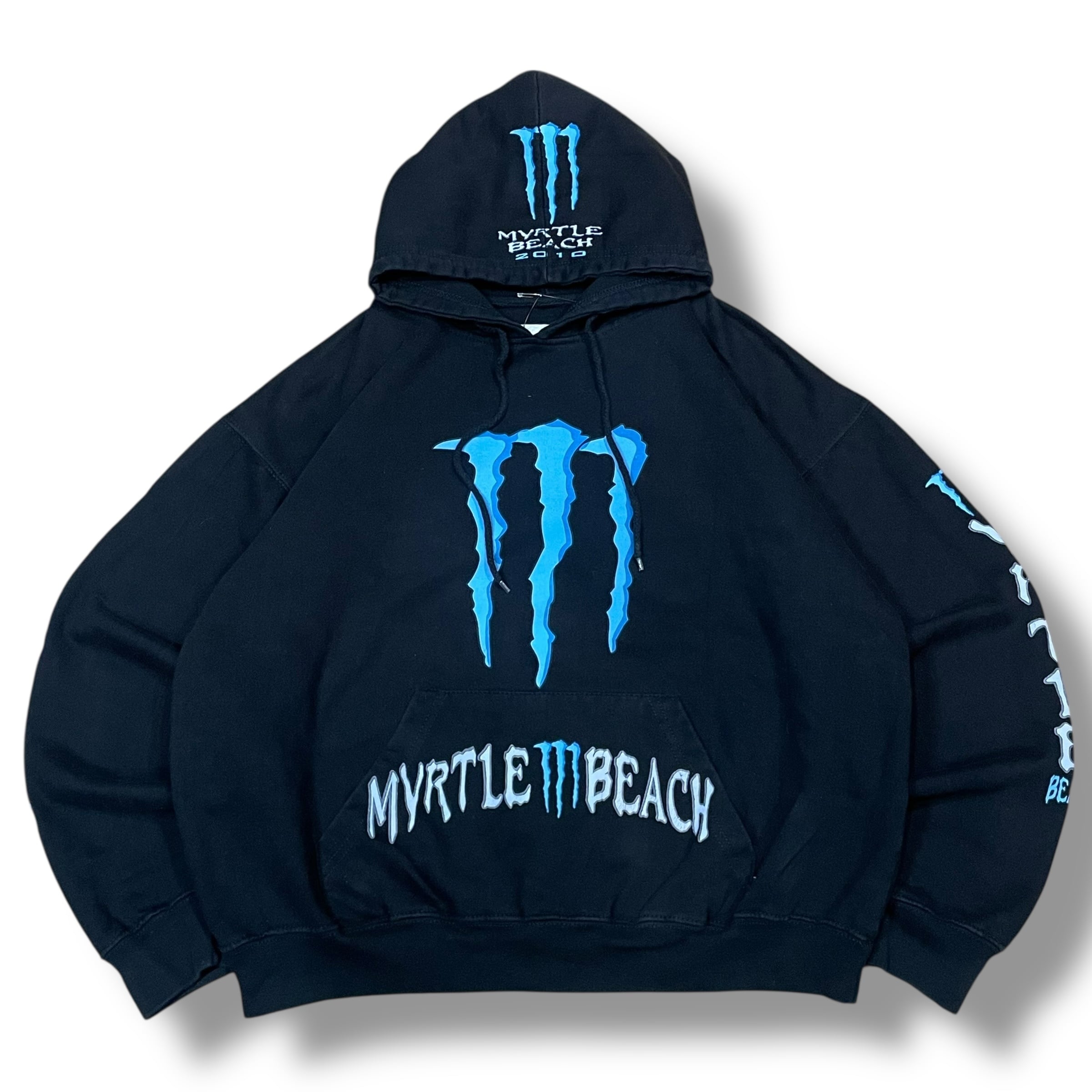 【L】MONSTER 企業ロゴパーカー フーディー 袖プリント 黒 ブラック