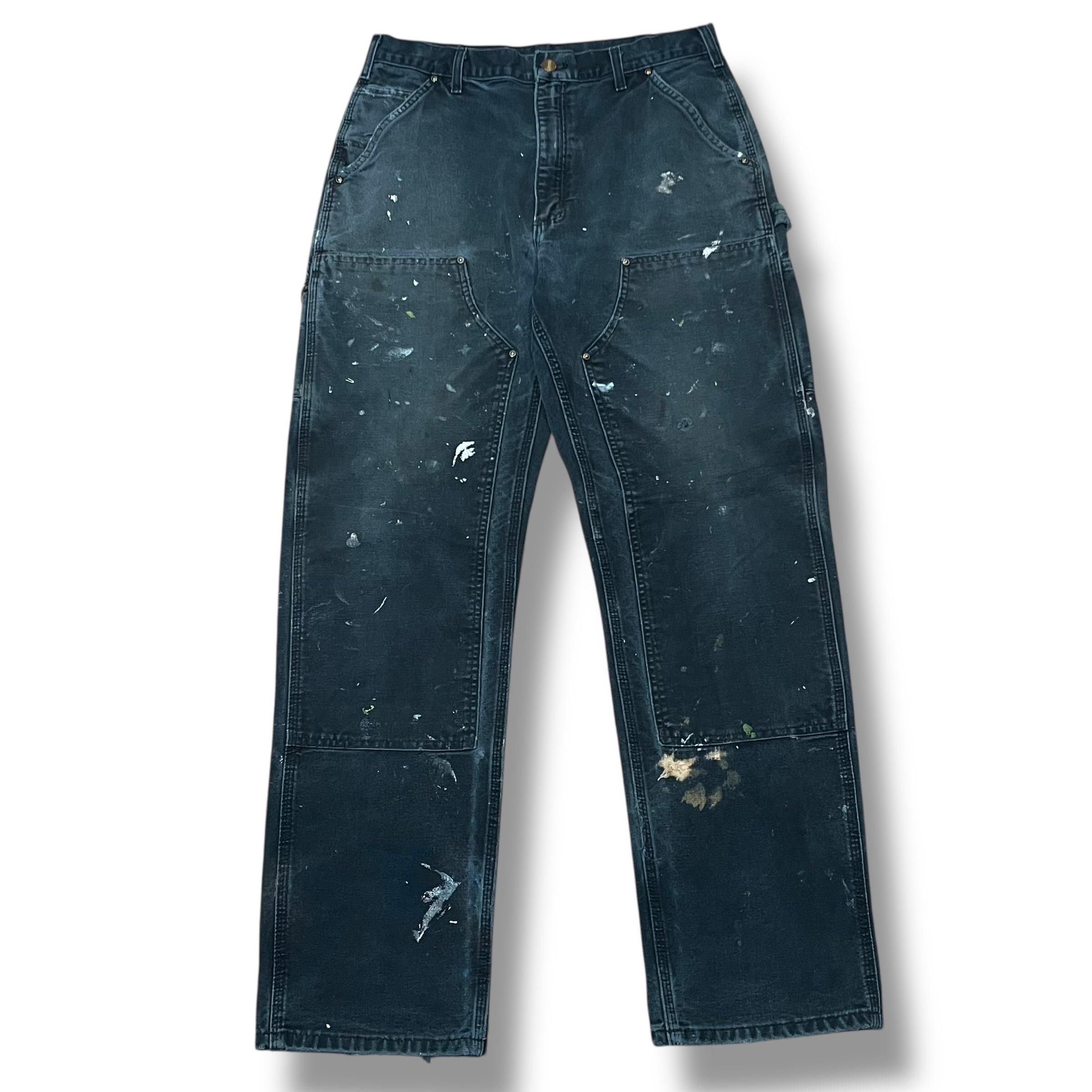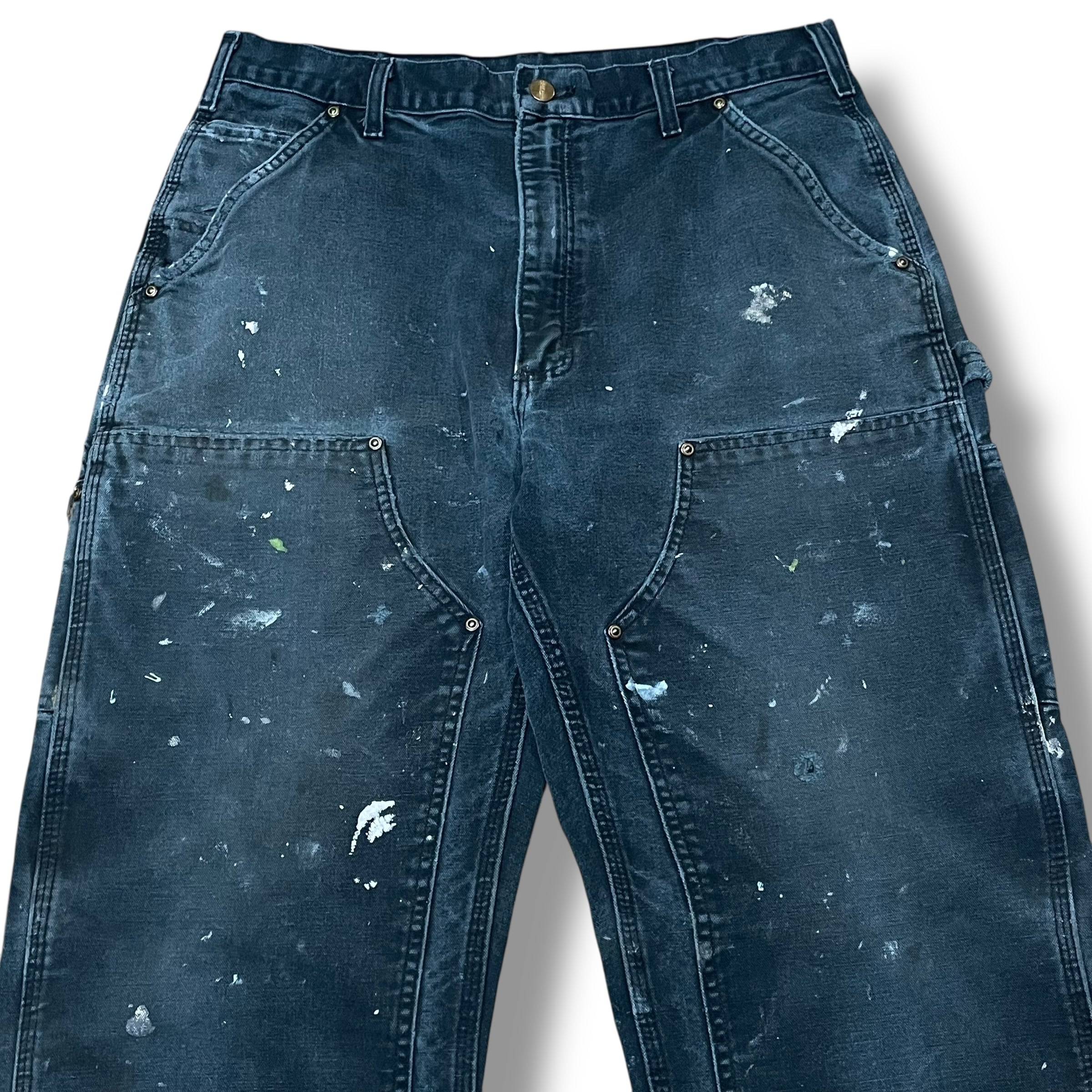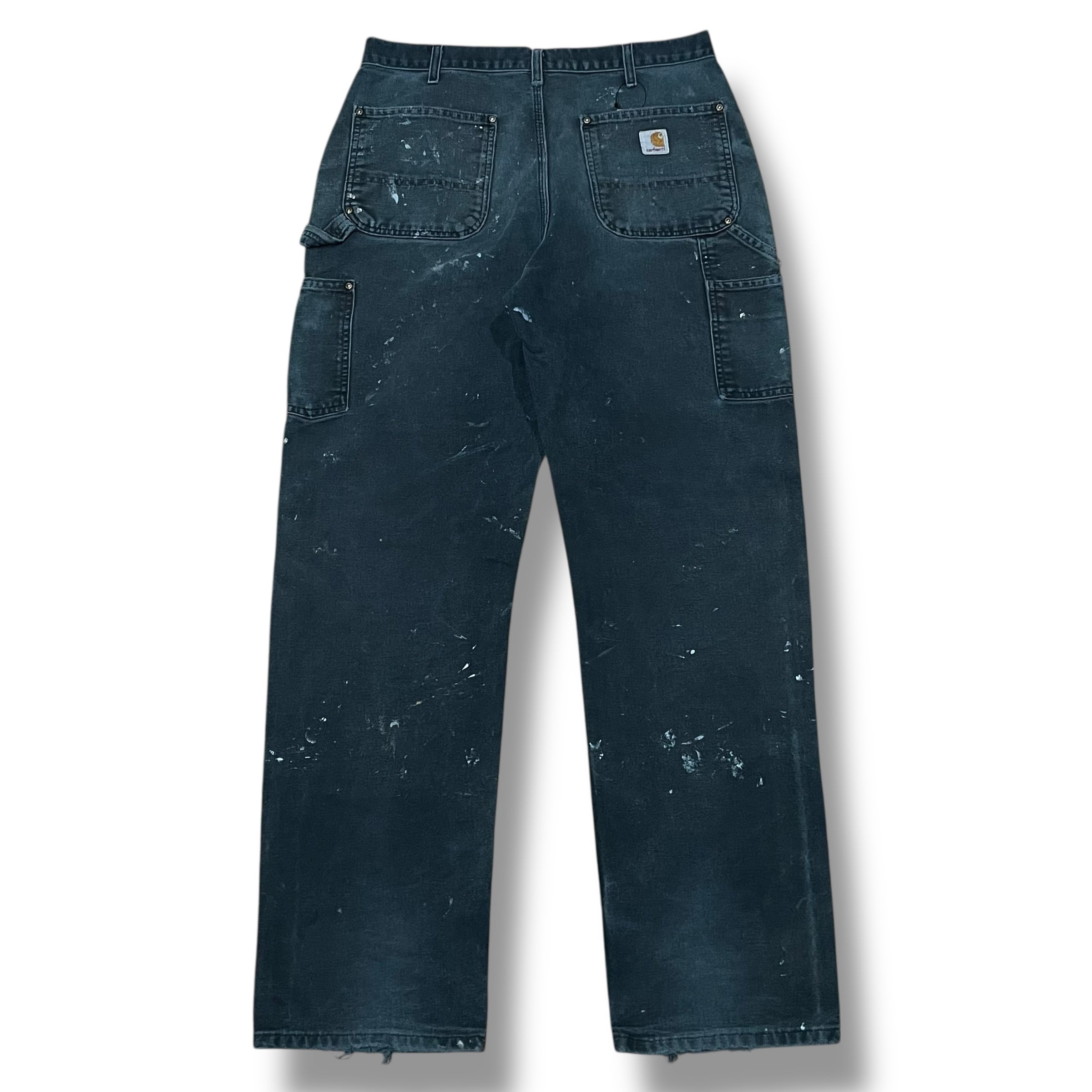 【33×33】【90年代】Carhartt カーハート ダブルニー ダックパンツ ペインターパンツ カーペンターパンツ ブラック 襤褸
