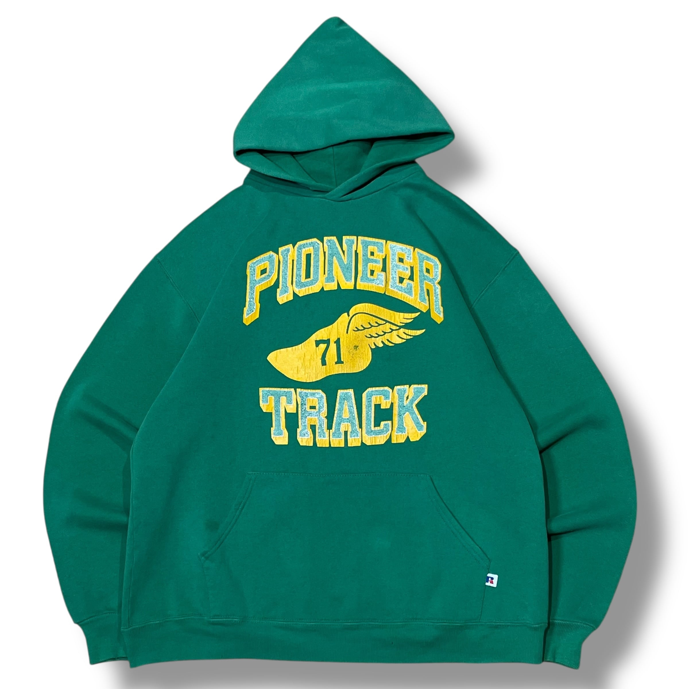 【L】【80年代】【USA製】RUSSELL ATHLETIC ラッセルアスレティック カレッジロゴ パーカー 緑 グリーン