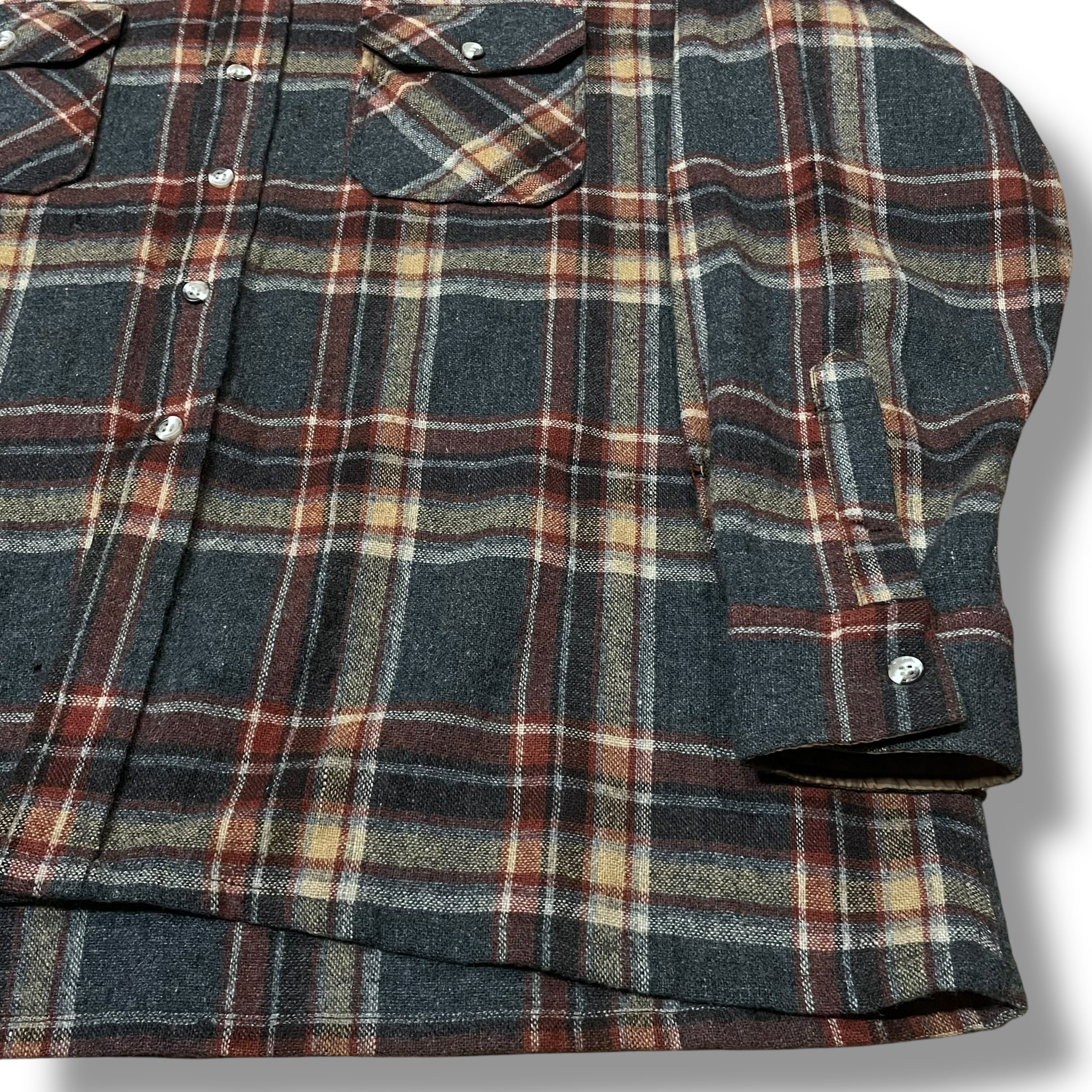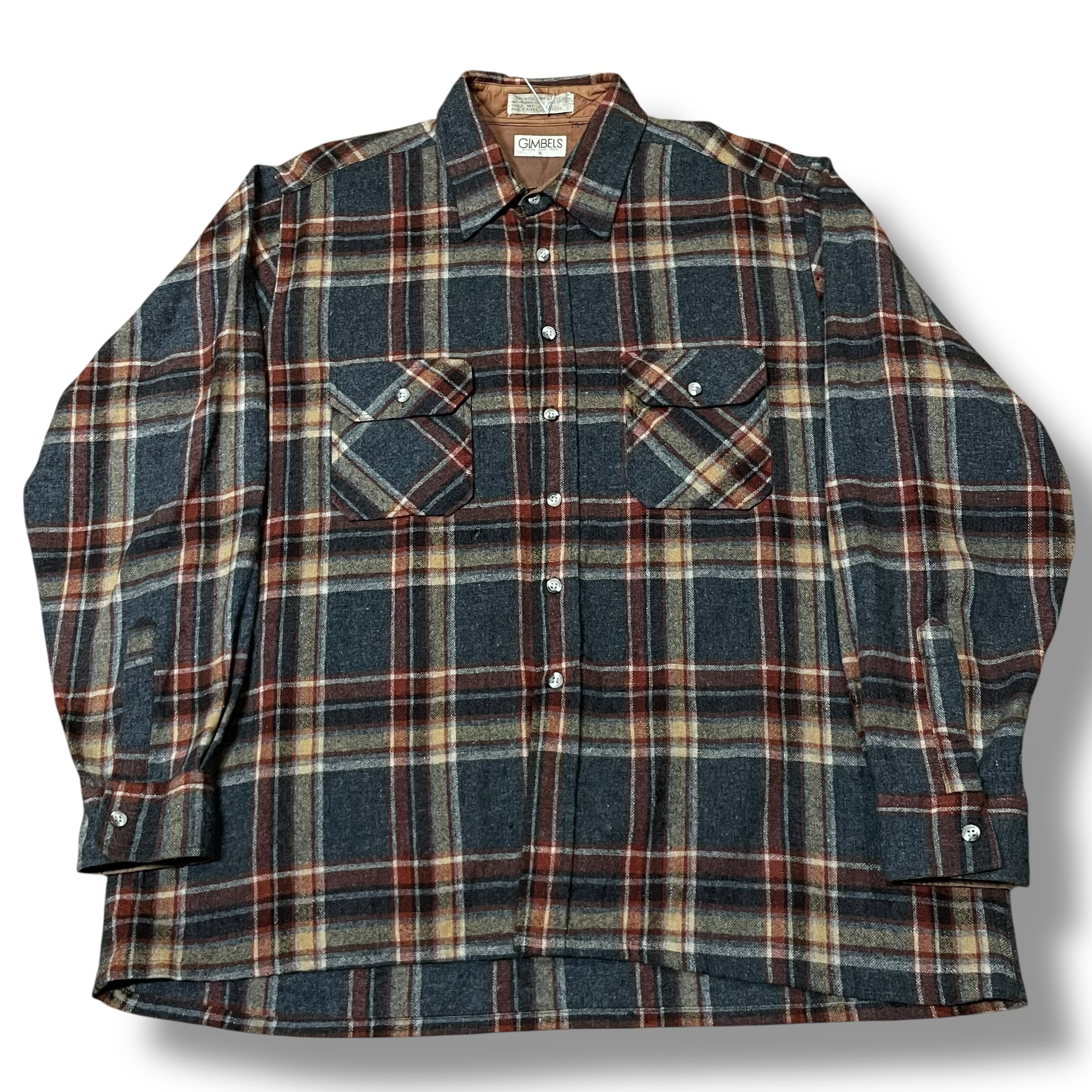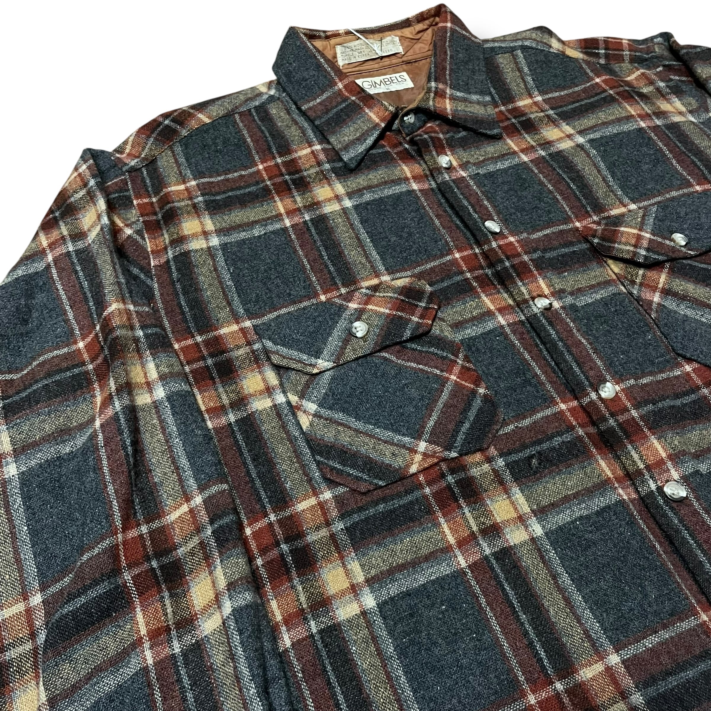 【XL】【70年代】GIMBELS 長袖シャツ ウールシャツ チェックシャツ ネルシャツ