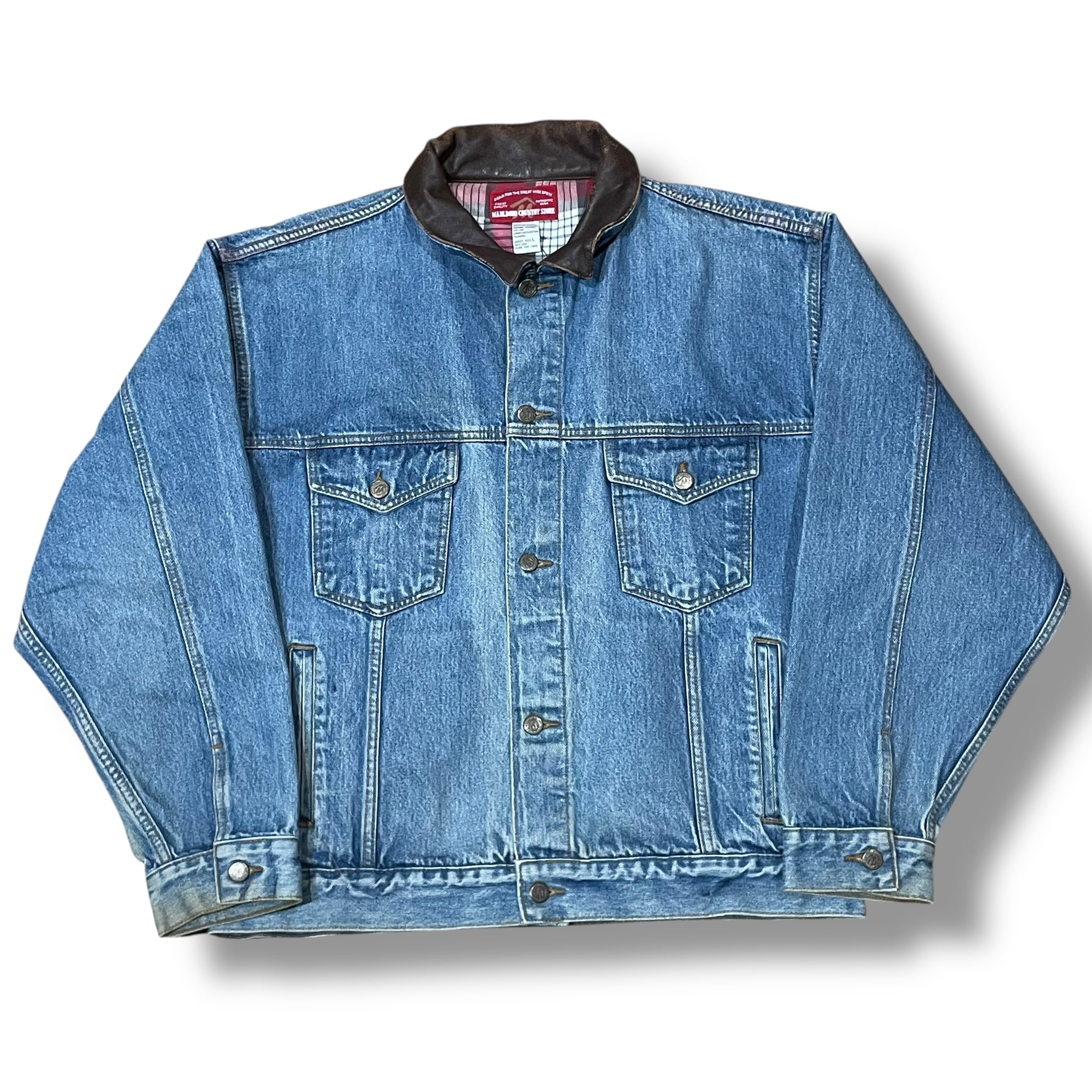 【L】【90年代】Marlboro County デニムジャケット Gジャン 襟レザー切り返し