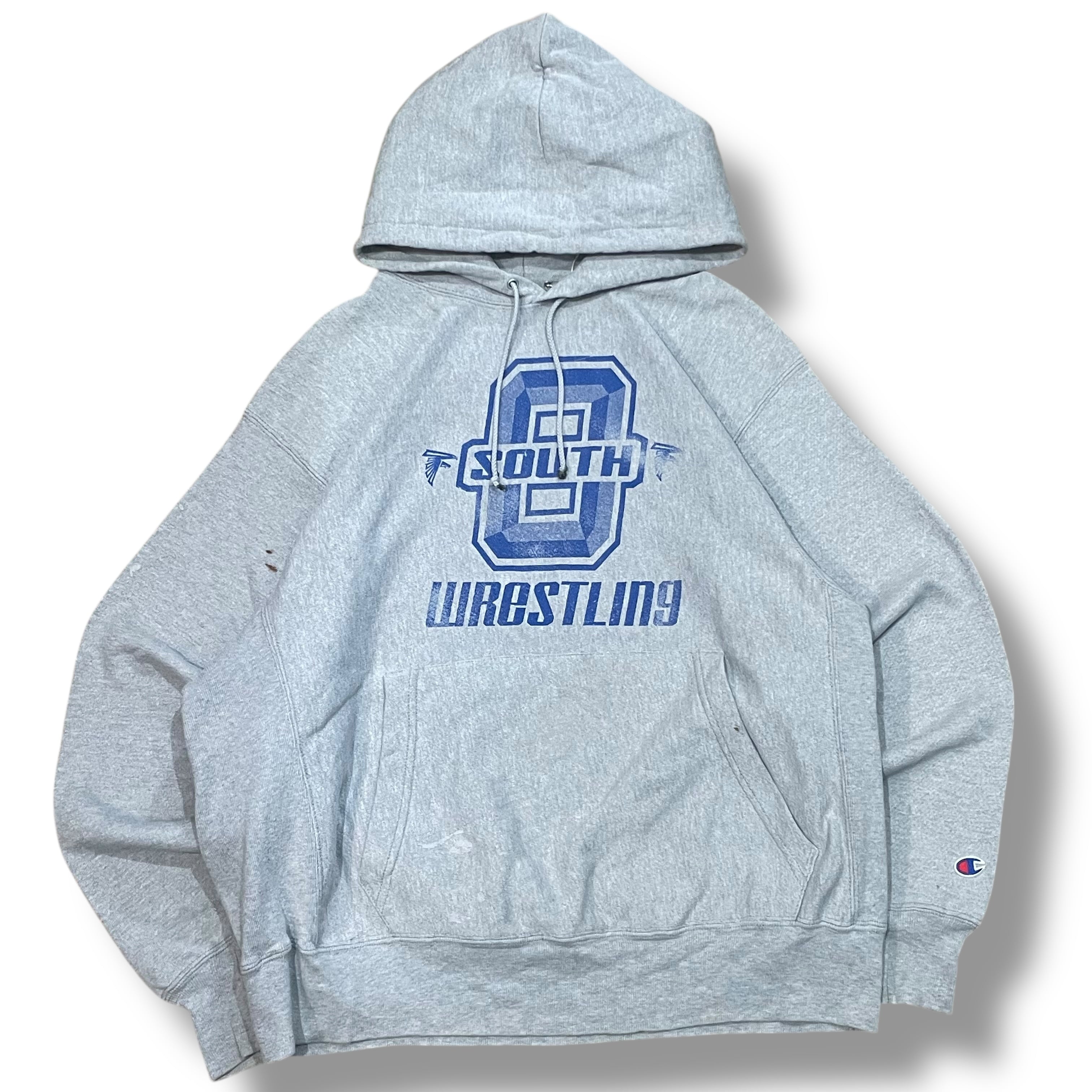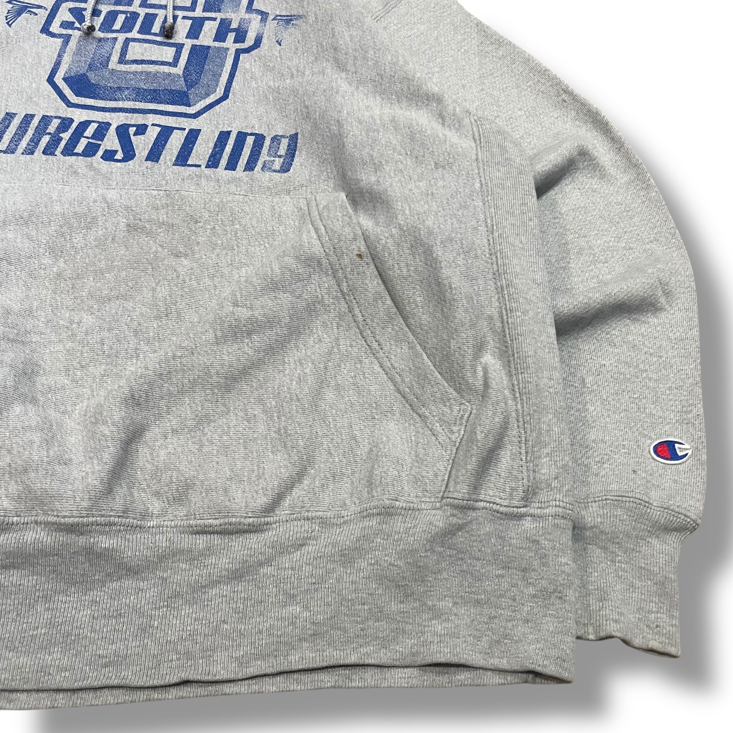 【L】【00年代】Champion チャンピオン Reverse weave R/W リバースウィーブ SOUTH WRESTLING カレッジロゴ パーカー グレー