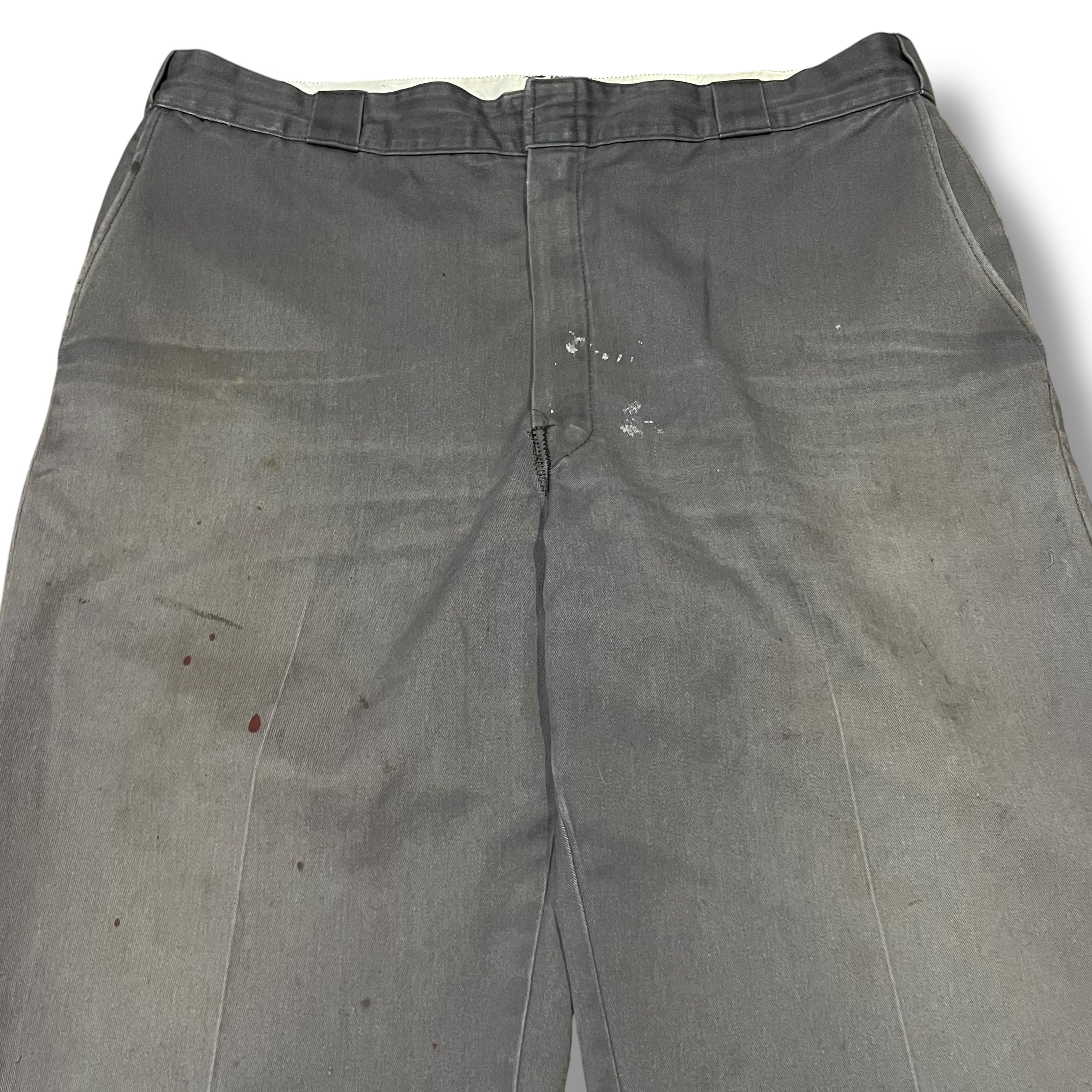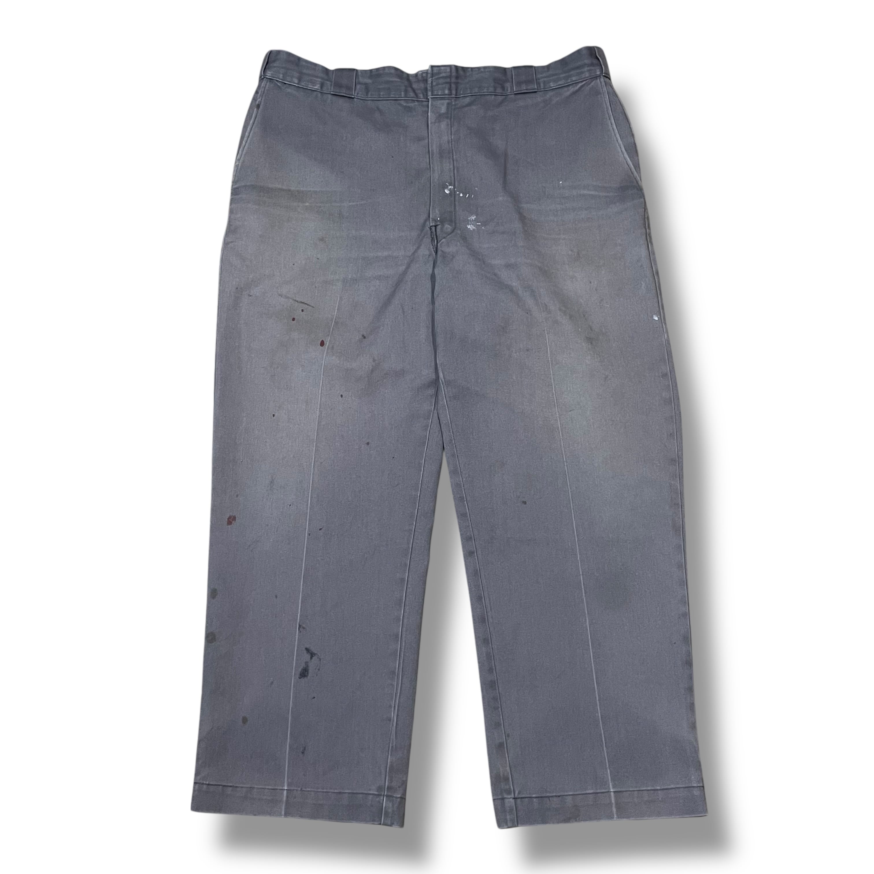 【40×28】【90年代】【USA製】Dickies ディッキーズ 極太 ワークパンツ ブランドロゴ ちびタグ グレー