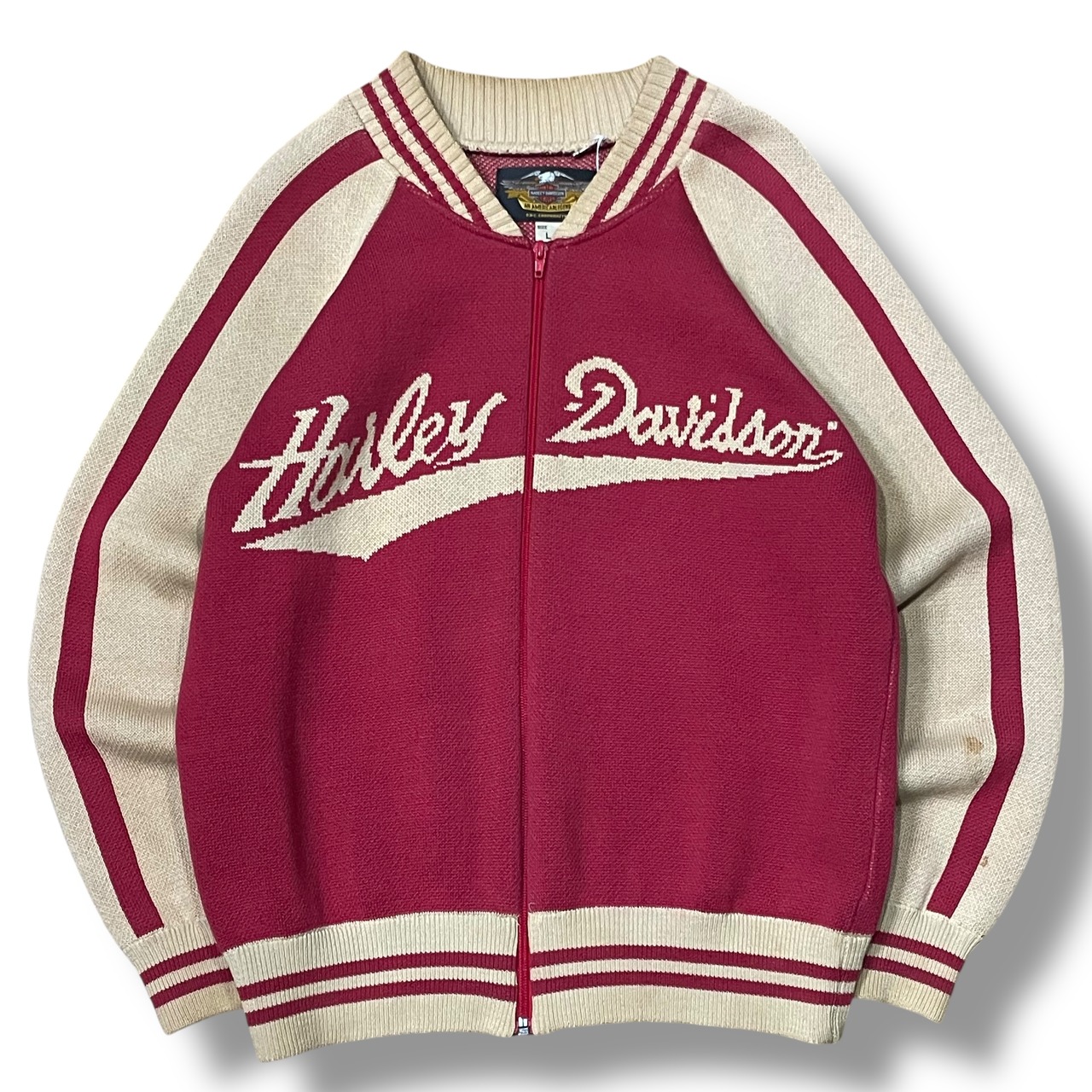 【L】【90年代】Harley-Davidson ハーレーダビッドソン ドライバーズニット ジップアップニット ニットジャケット ラグランスリーブ