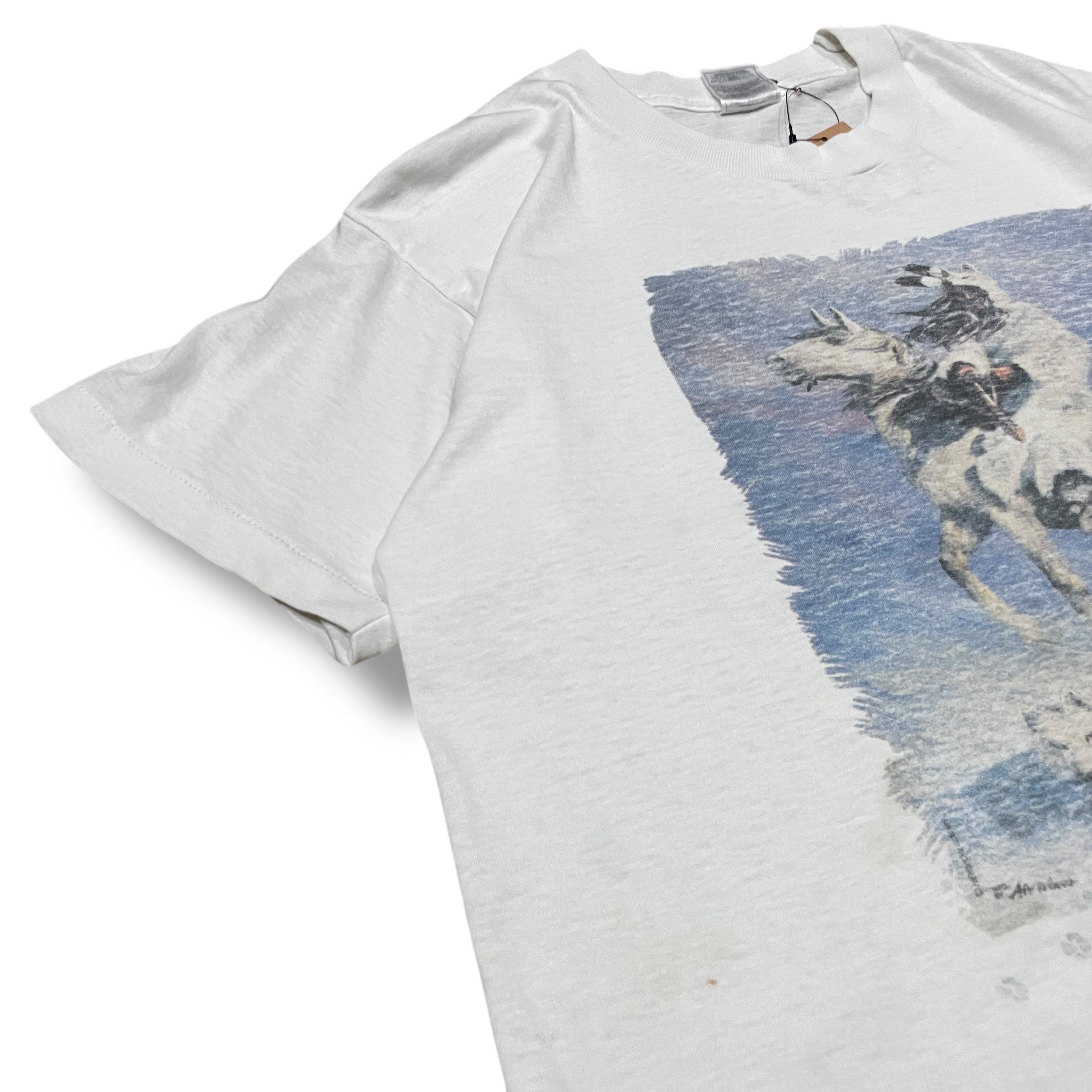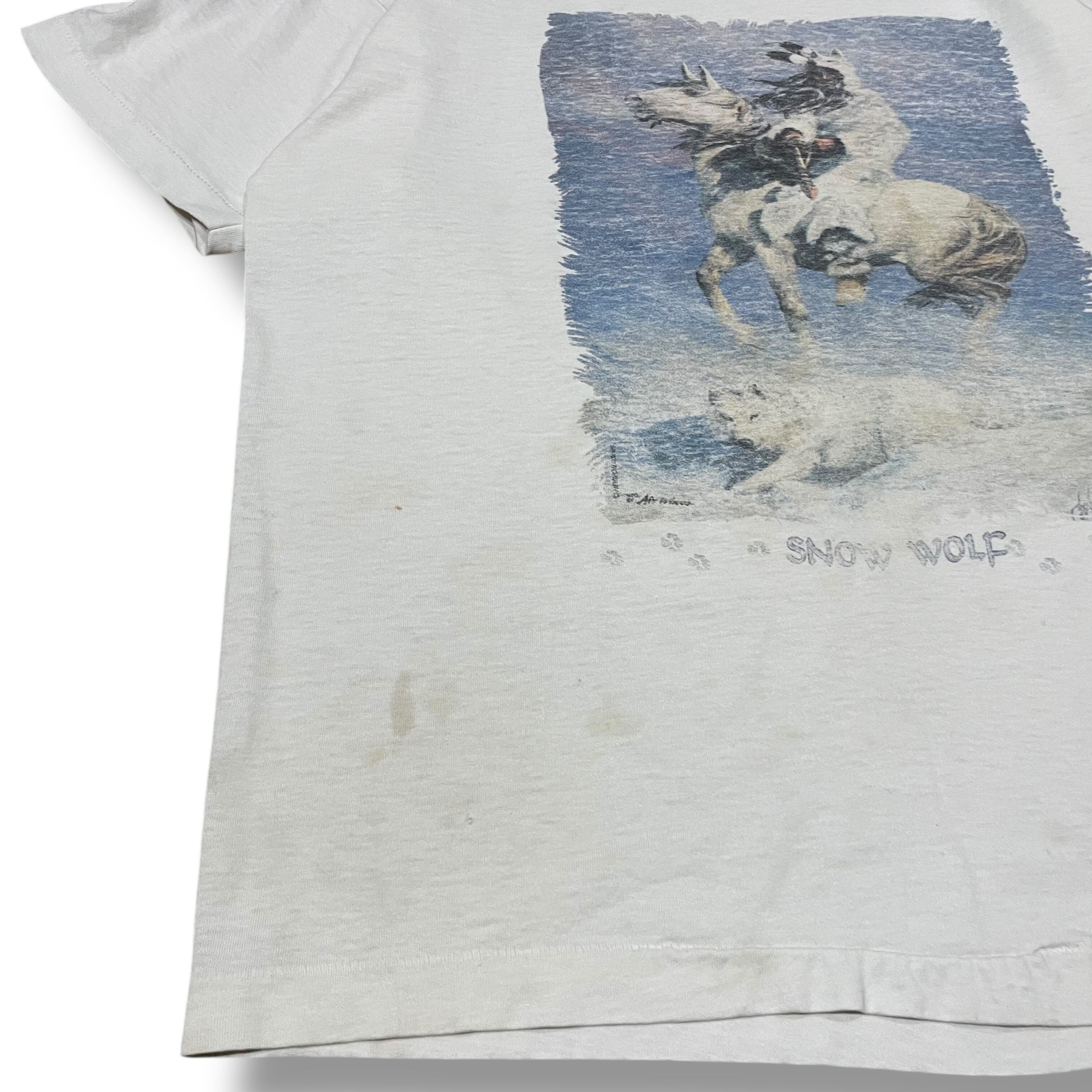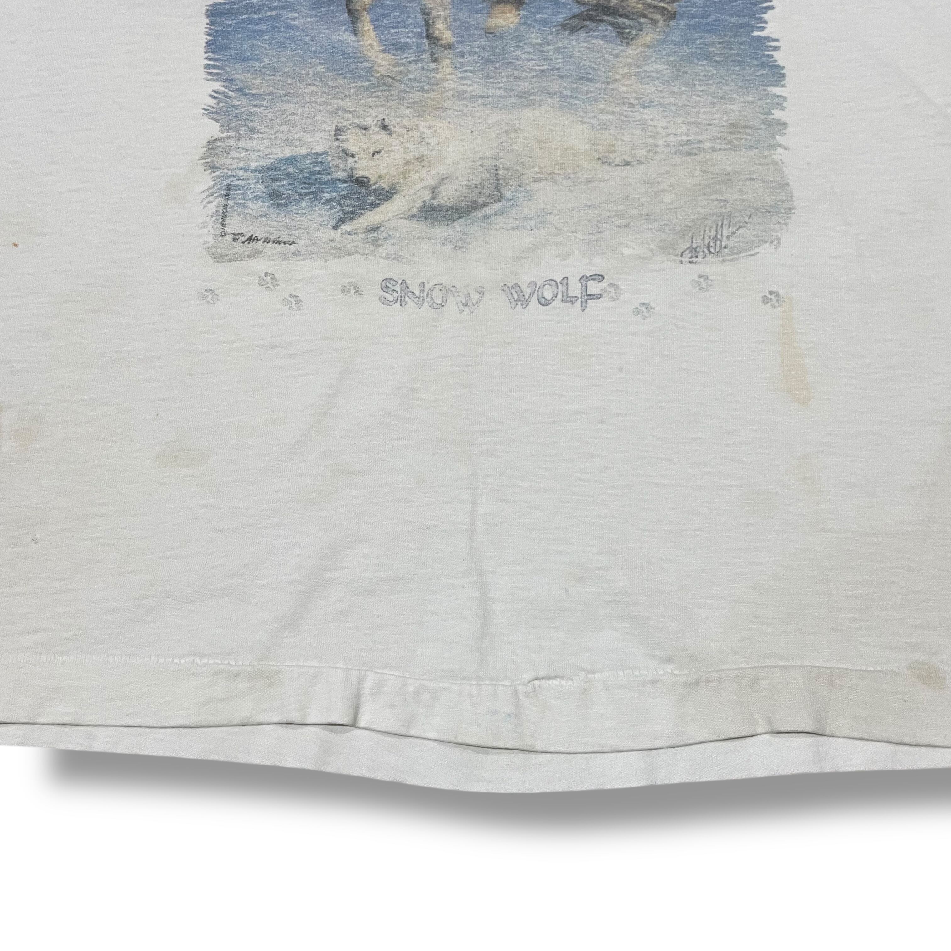 【L】【90年代】SNOW WOLF 白Tシャツ プリントTシャツ 半袖Tシャツ