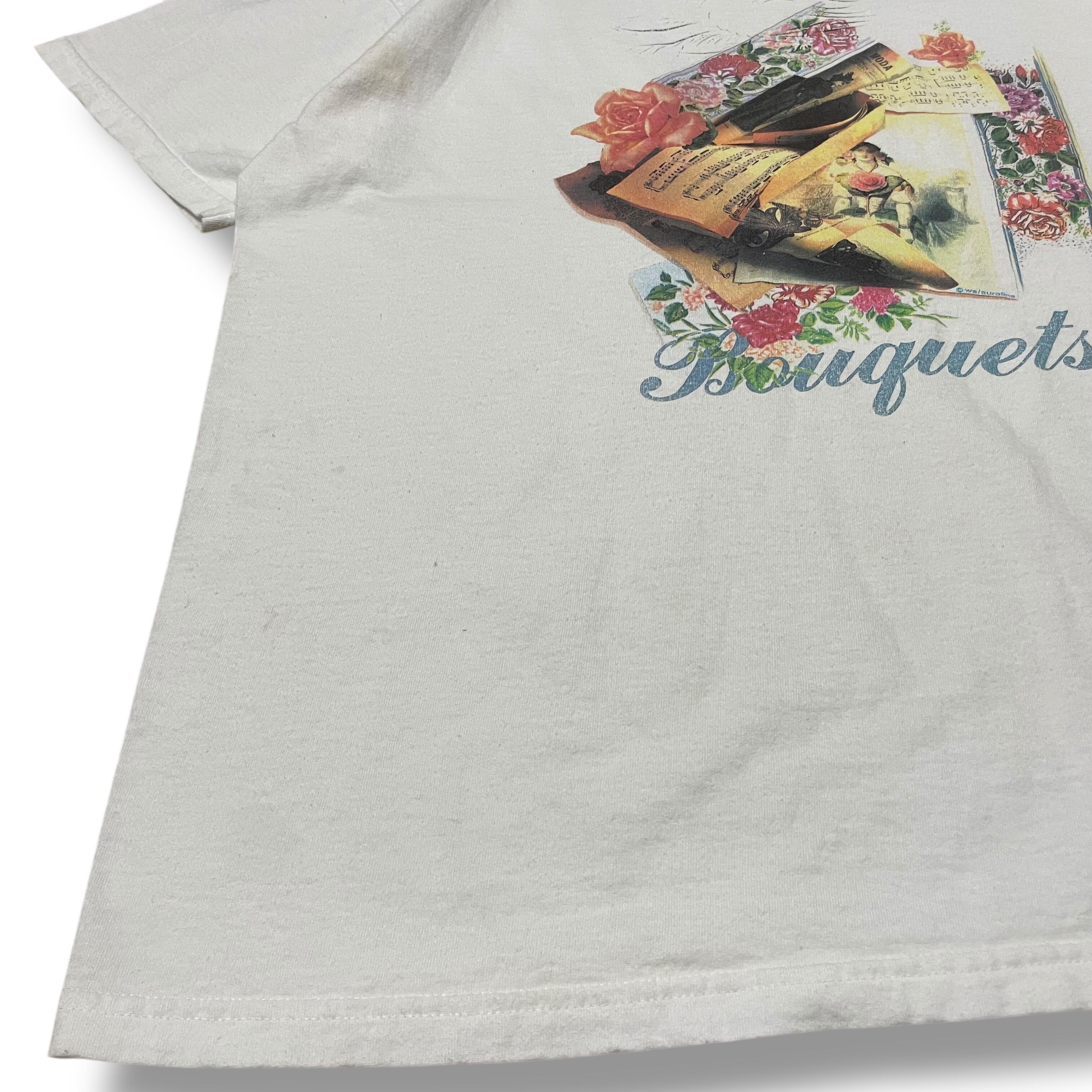 【L】【90年代】【USA製】 Bouquets 白Tシャツ プリントTシャツ 半袖Tシャツ