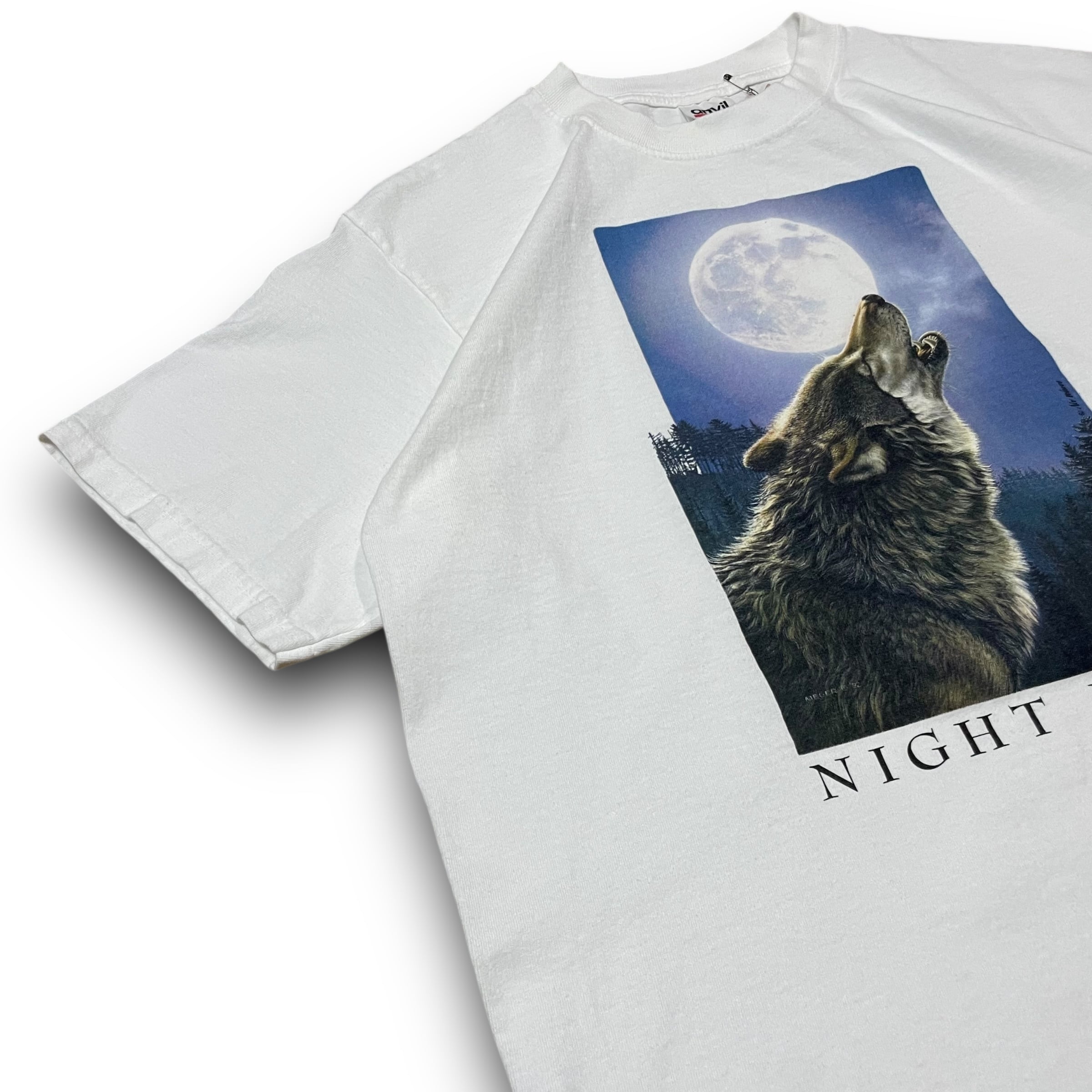 【L】【00年代】NIGHT MUSIC アニマルプリントTシャツ 半袖Tシャツ 白Tシャツ