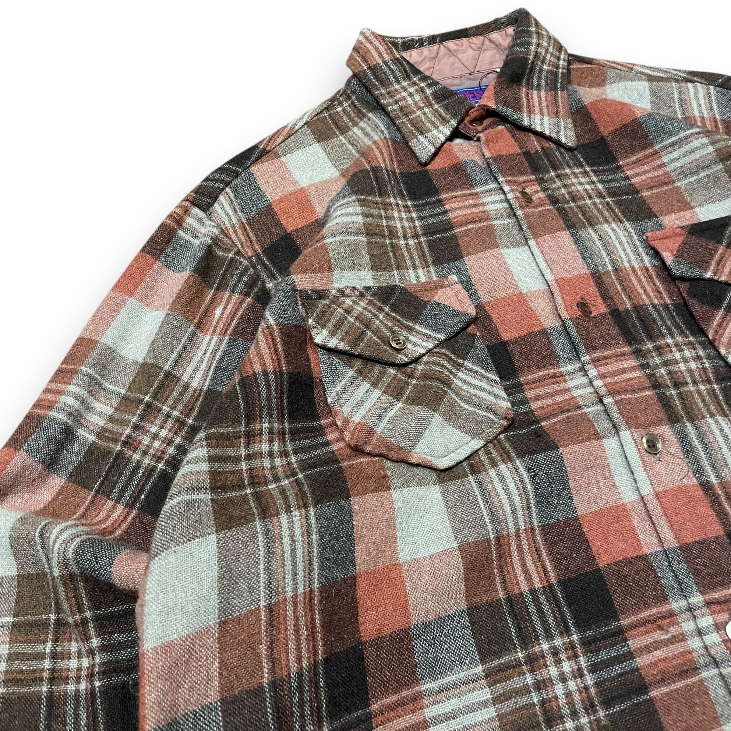 【L】【70年代】PONDEROSA チェックシャツ 長袖シャツ ウールフランネルシャツ