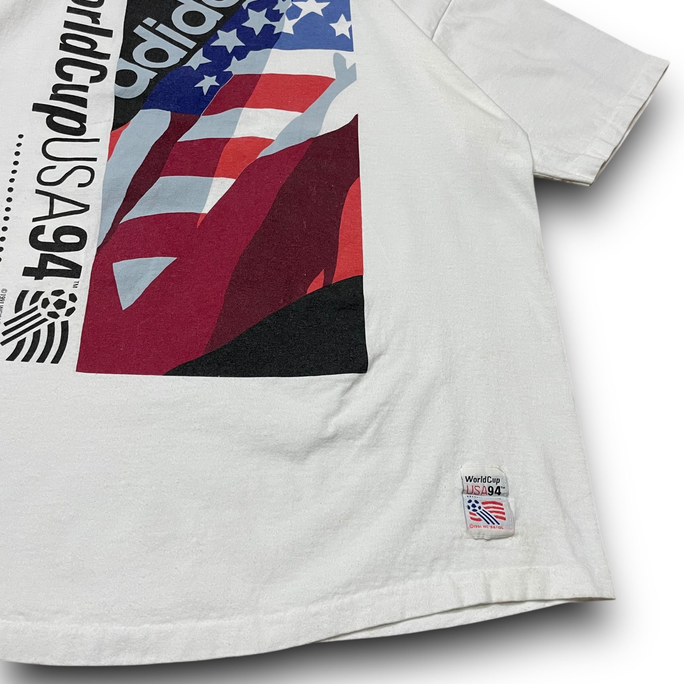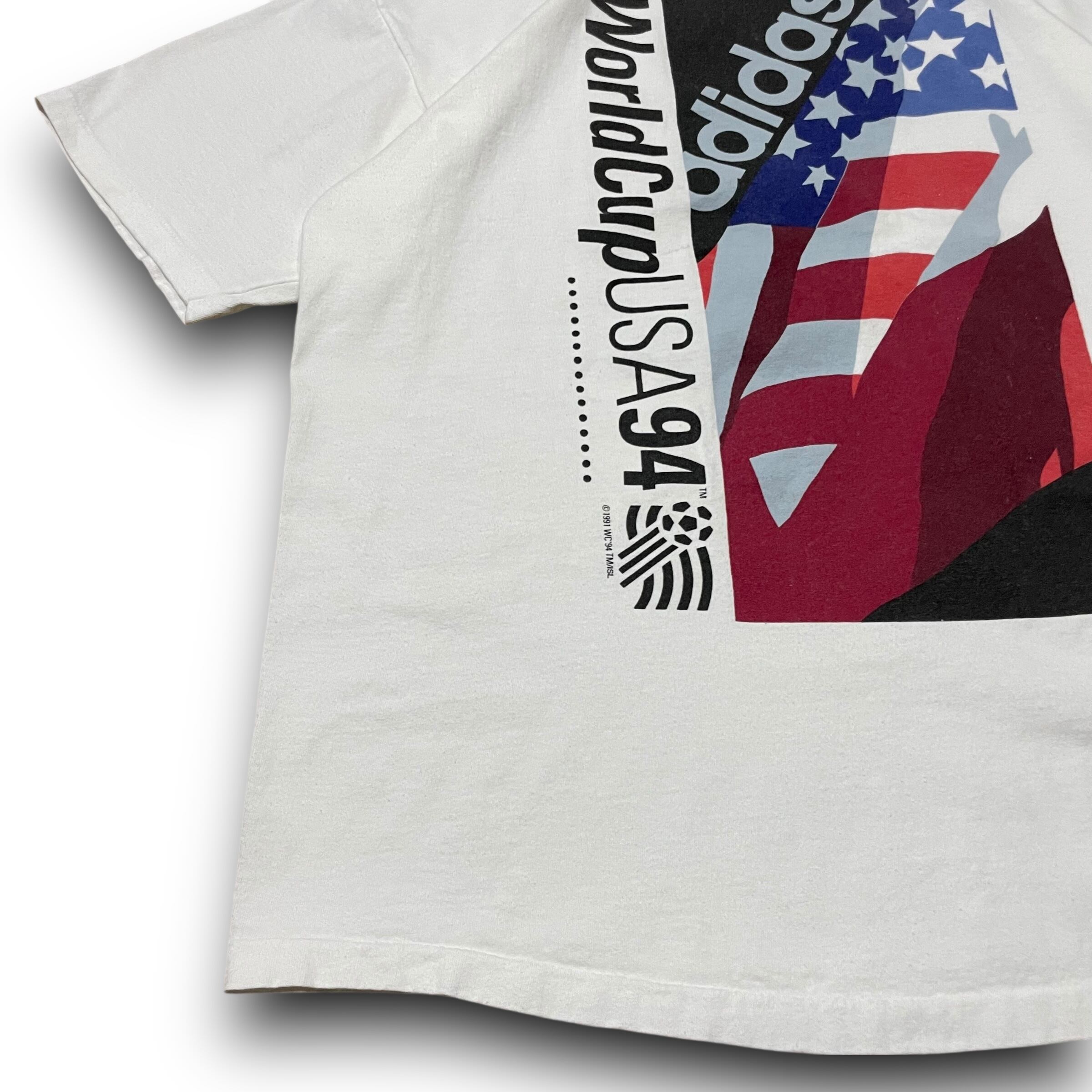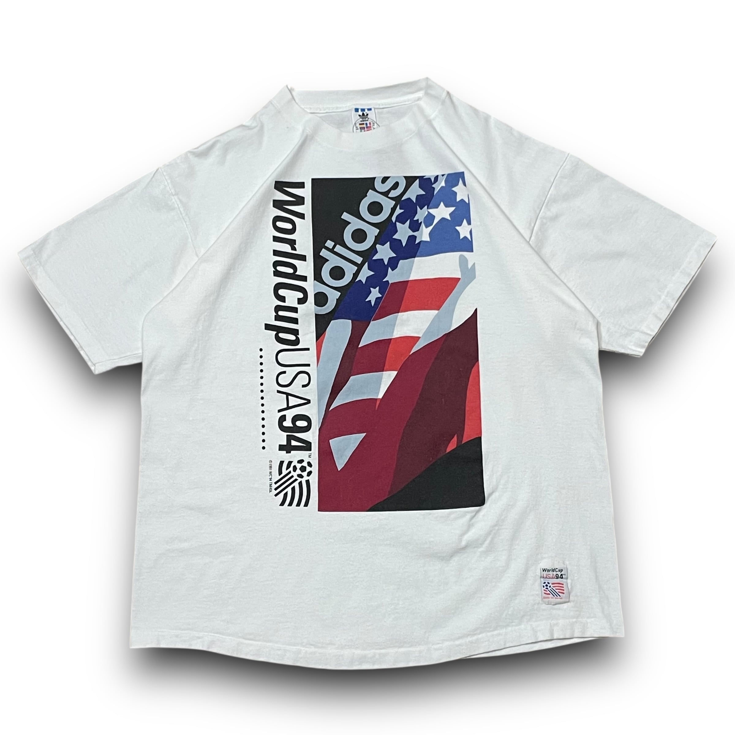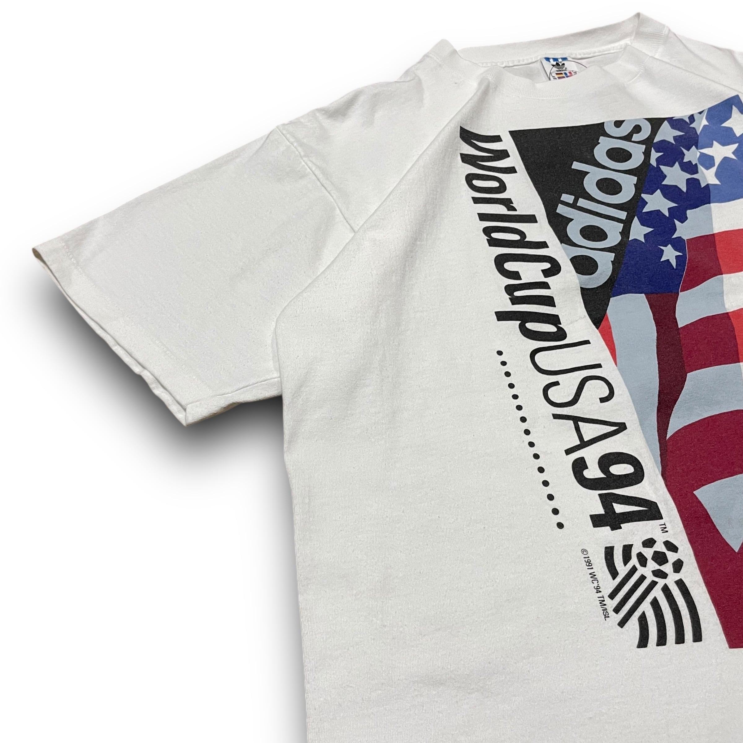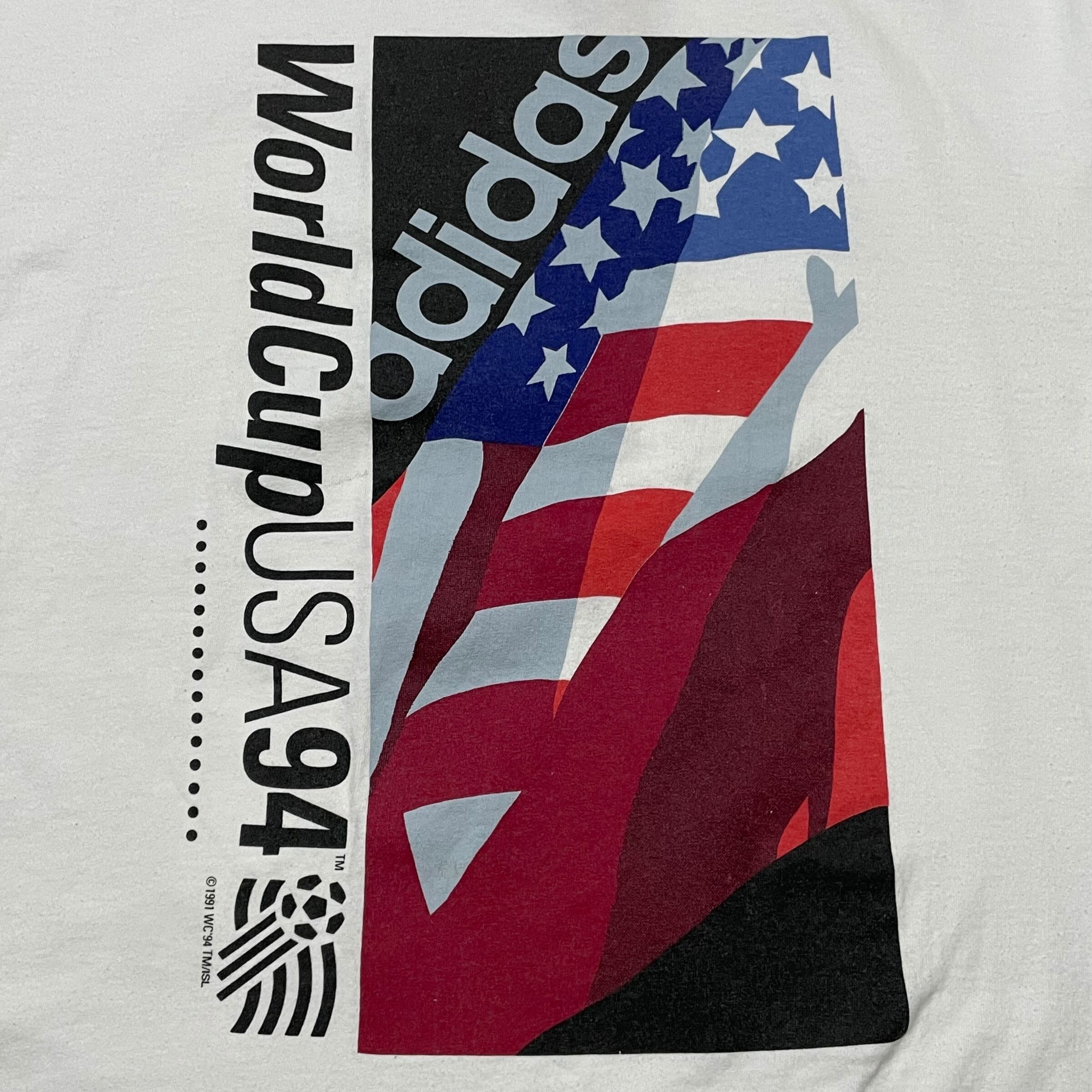 【L】【90年代】【USA製】adidas アディダス World Cup USA 1994 企業ロゴ プリントTシャツ 半袖Tシャツ 白T