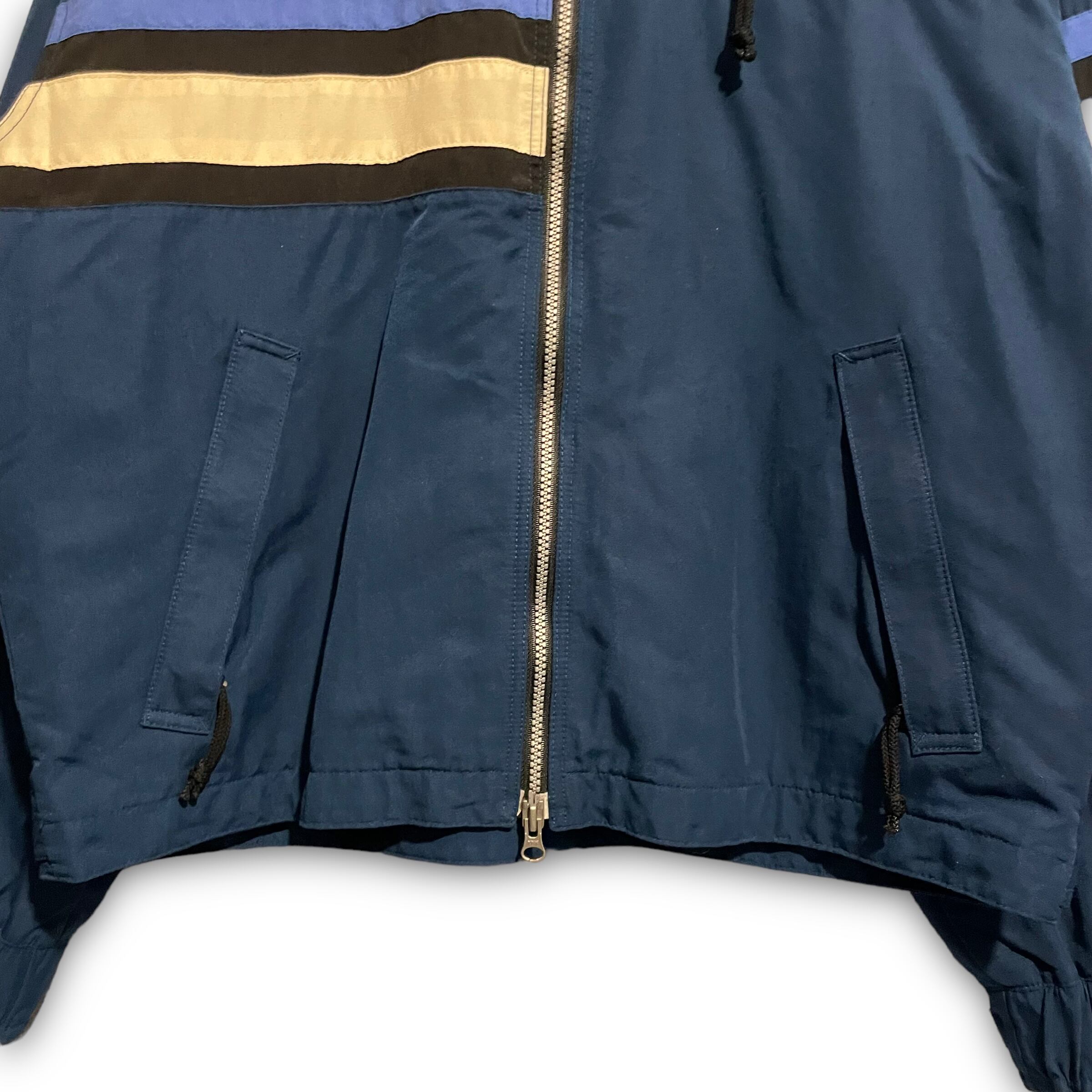 【M】OBSCURE ワークナイロンジャケット ワークジャケット 企業ロゴ 刺繍ロゴ ボーダーデザイン アシンメトリー
