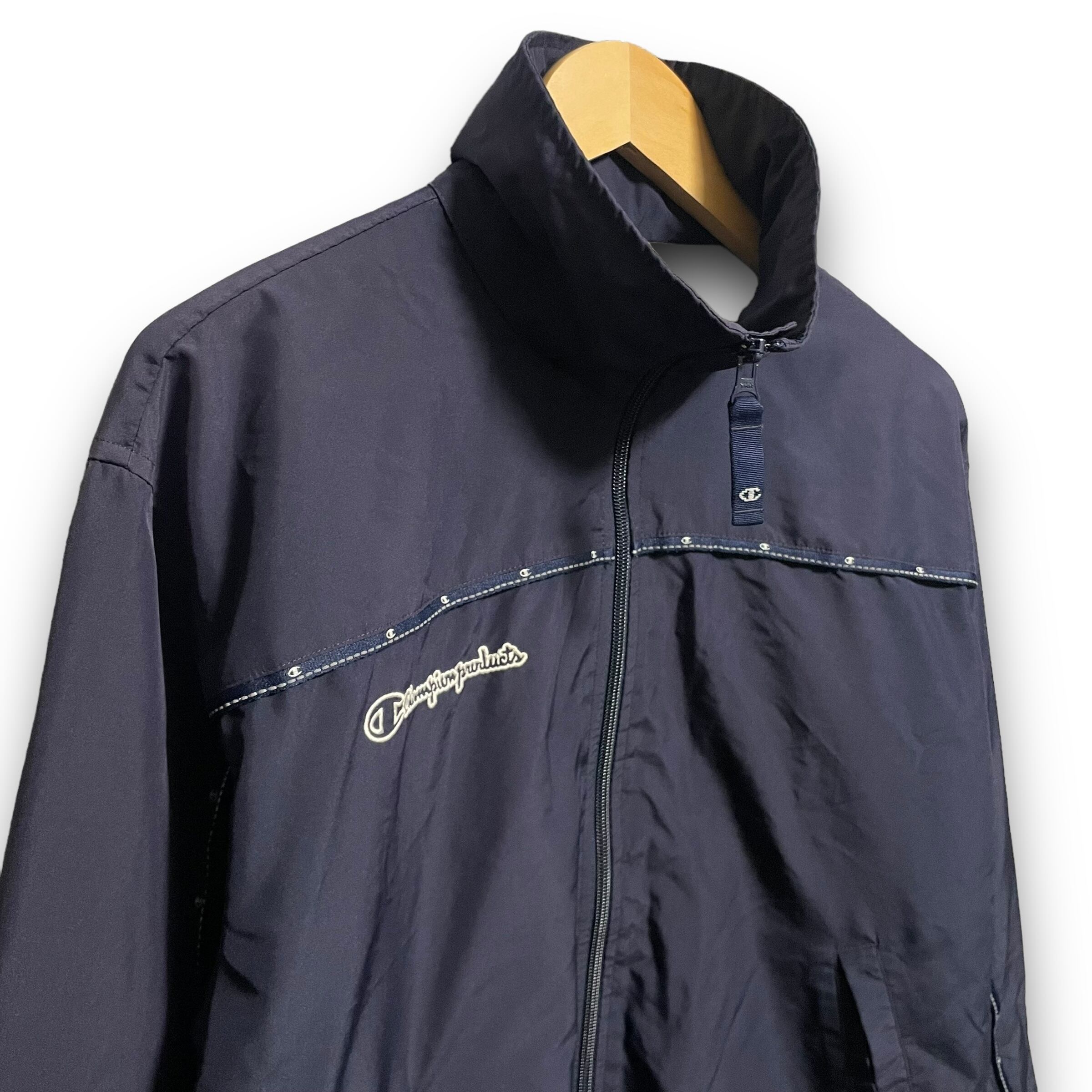 【S】【90年代】Champion products チャンピオン 刺繍ロゴ ナイロンジャケット トラックジャケット風 ドローコード付き