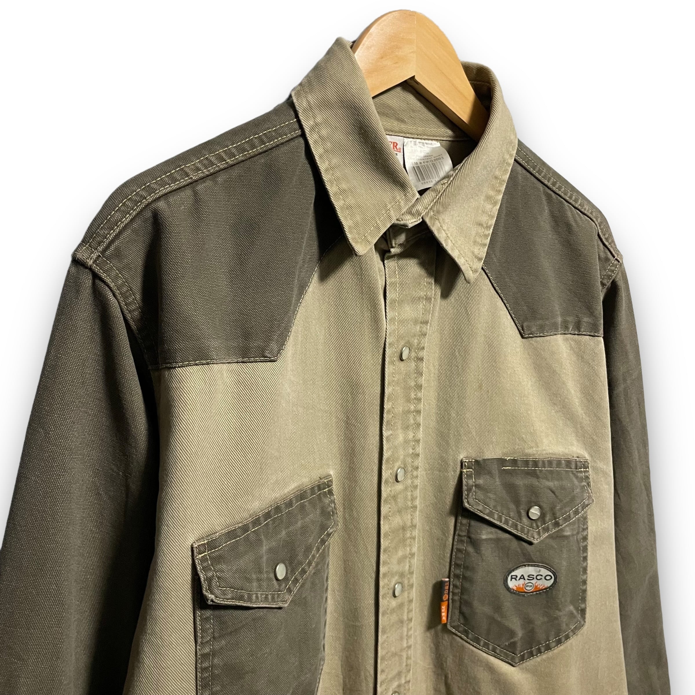 【XL】RASCO FR ウエスタンシャツ風 ダック生地 長袖シャツ ワークシャツ 防火仕様