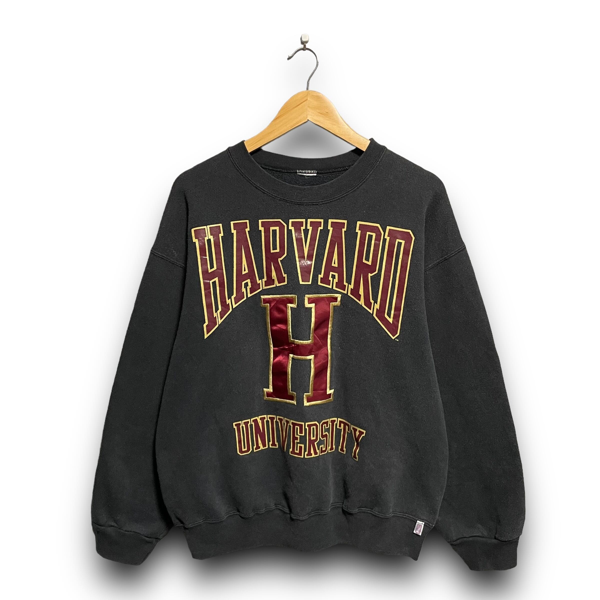 【L】【90年代】CS Crable Sportswear カレッジロゴ プリント 刺繍 スウェット 「HARVARD UNIVERSITY」 フェード 炭黒