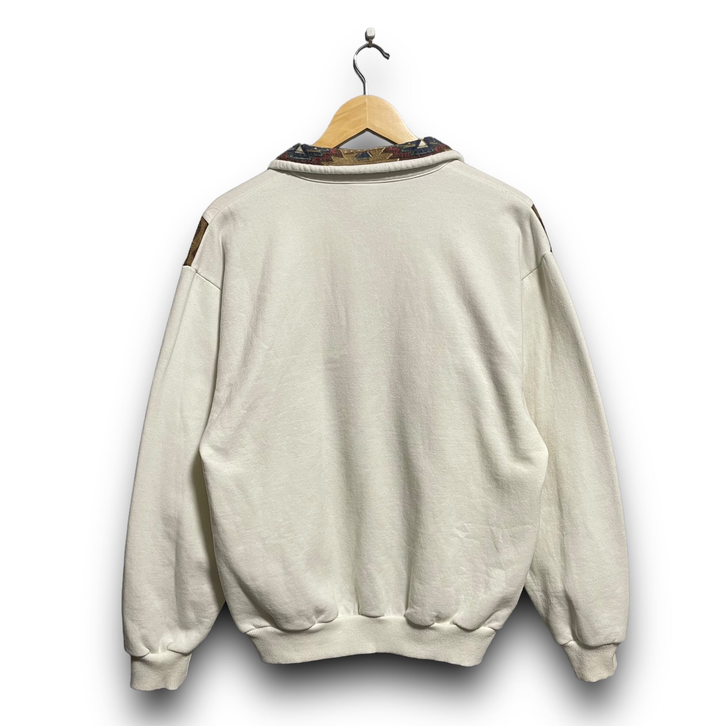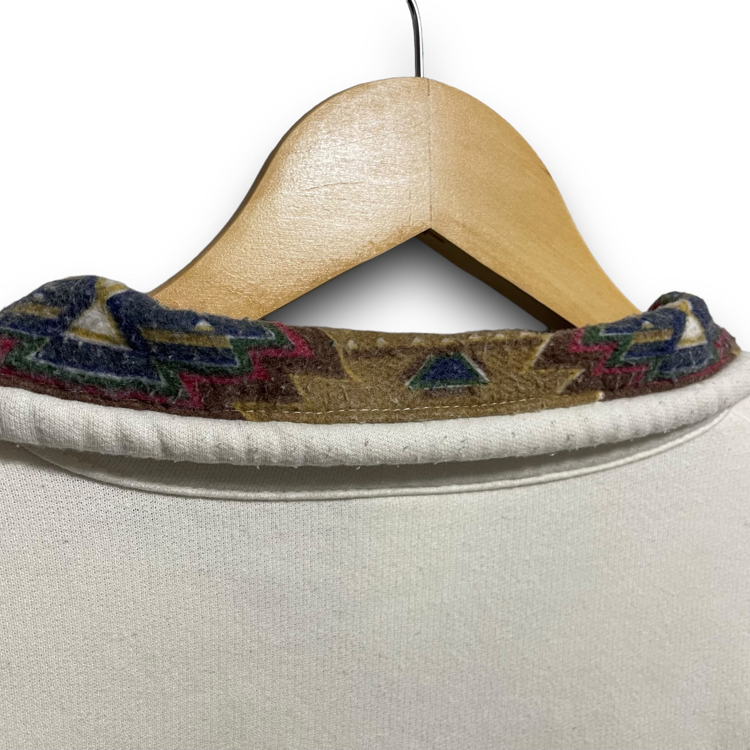 【L】【90年代】GAME Workwear 企業ロゴ 刺繍ロゴ ハーフジップスウェット デニム切り替え 襟付き エルボーパッチ付き